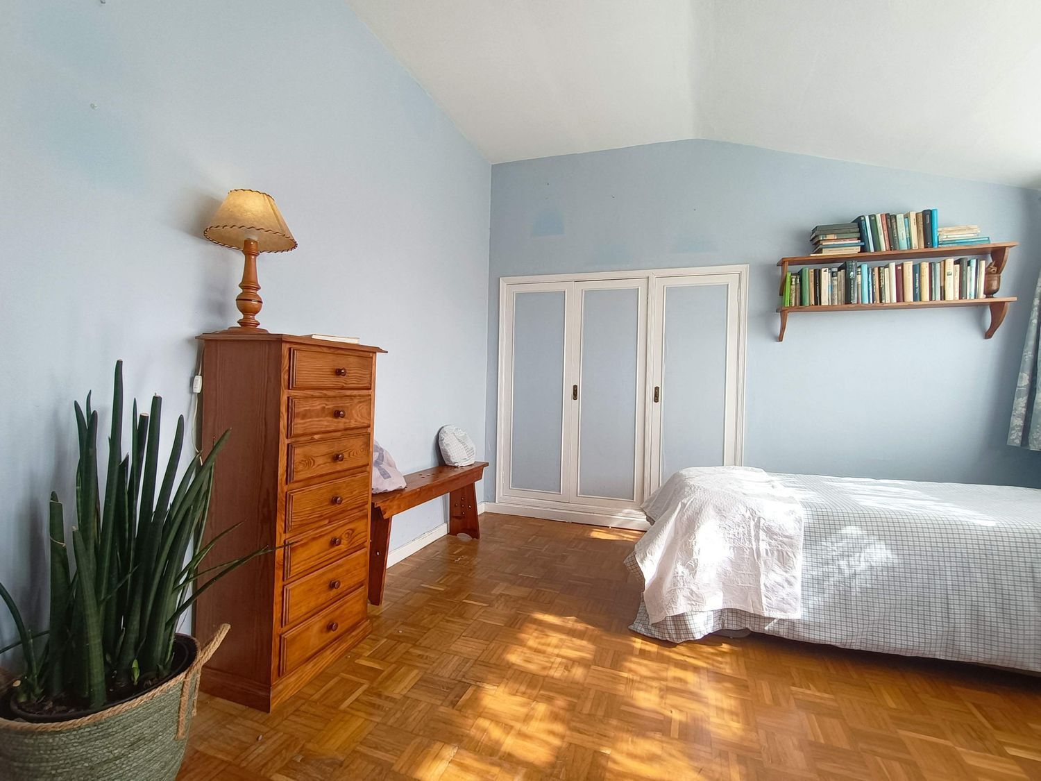 Segunda planta pasillo, baño con ventana y tres dormitorios.