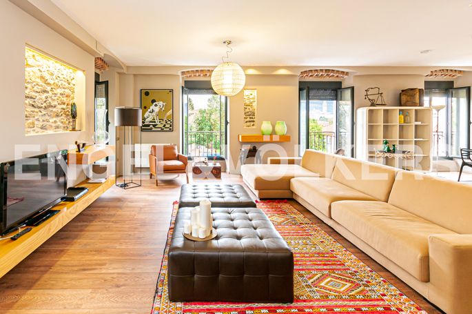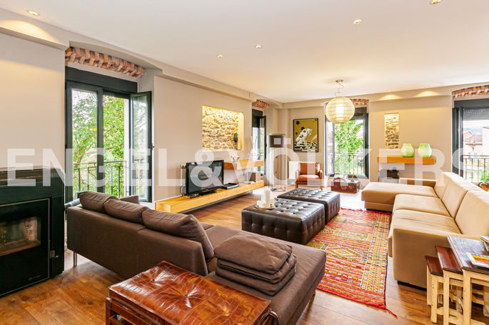 Engel & Völkers Asturias presenta este excepcional inmueble ubicado en la exclusiva zona residencial de Somió, a sólo 10 minutos del centro de Gijón. Situado sobre una finca de 2.750 m2 de jardín consolidado con árboles centenarios y con una preciosa piscina. Una acertada rehabilitación de un edificio con historia, construido en principio como sanatorio y posteriormente un convento católico, convertido ahora en una espectacular vivienda decorada con mimo y excelentes calidades pero manteniendo su esencia y proporcionando el confort y el diseño que se respira en su distribución y mobiliario de calidad superior. Consta de 1000 m2 distribuidos en cuatro plantas con viviendas independientes. La PRIMERA PLANTA se compone de un espectacular loft de 223 m2. Dispone de un gran salón con chimenea y zona de cocina, todo con grandes ventanales con vistas directas sobre el jardín y gran luminosidad. Así mismo dispone de tres habitaciones, una de ellas con baño en suite, armarios empotrados y otro baño completo.