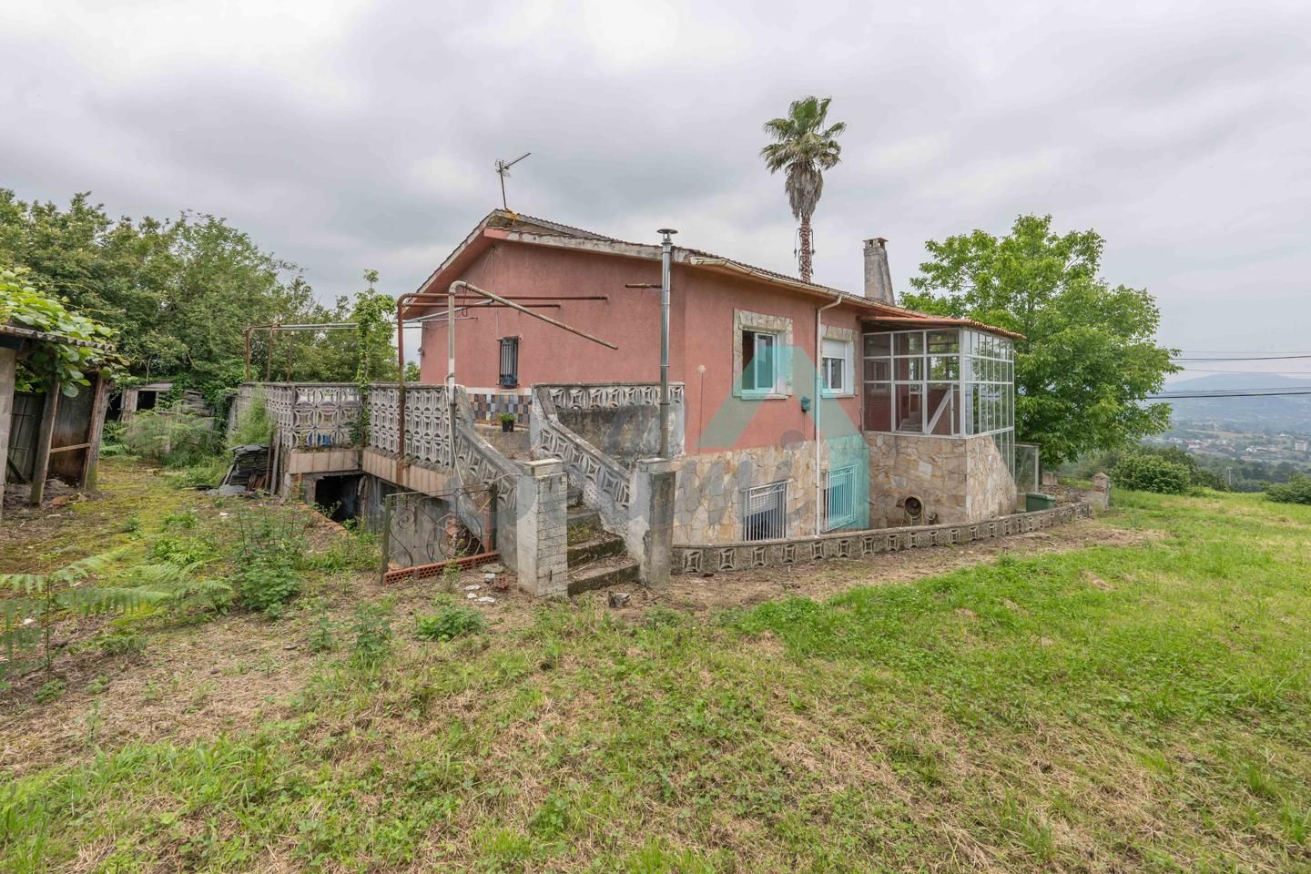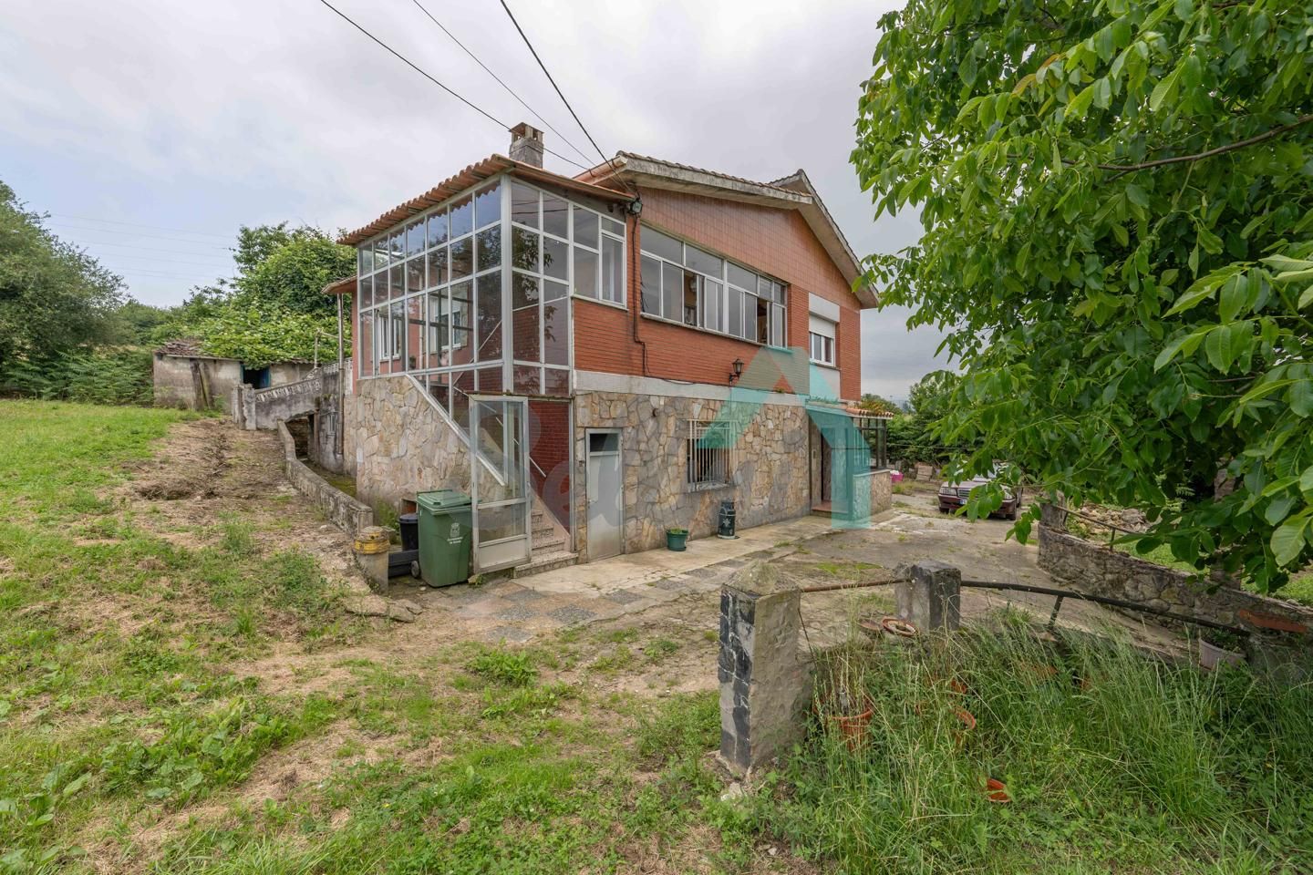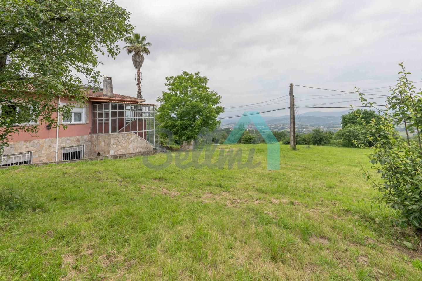 Chalet independiente en venta en Oviedo. Se ubica sobre una parcela cerrada de 3.611 m2 dividida en dos predios con referencias catastrales diferentes (una parcela de 2.491 m2 donde se encuentra la casa y otra parcela independiente de 1.121 m2).