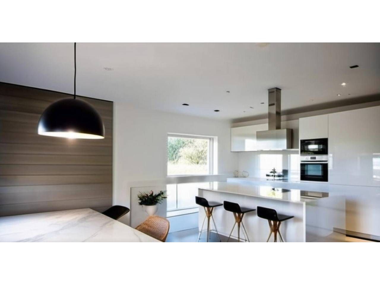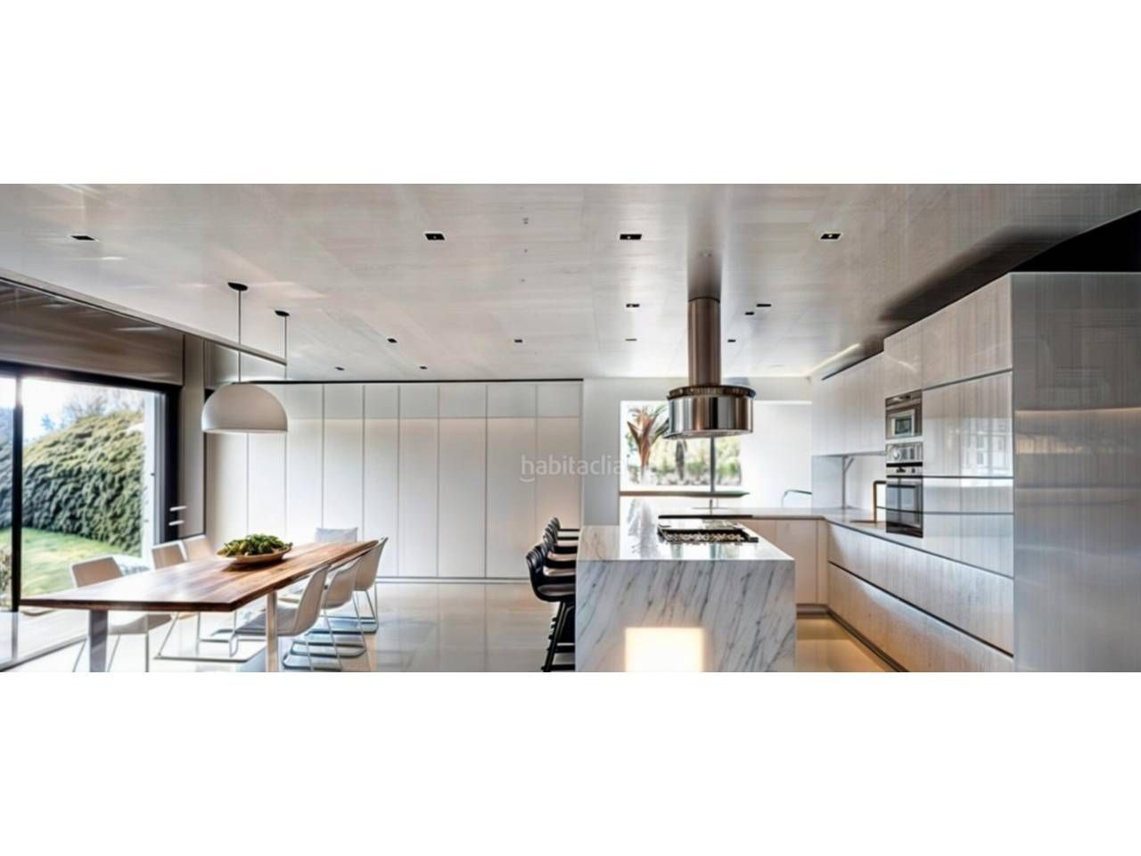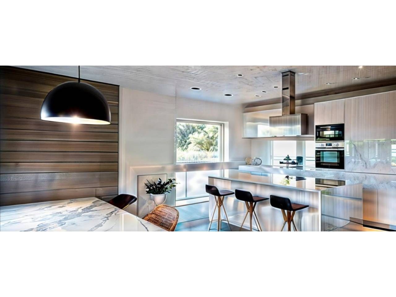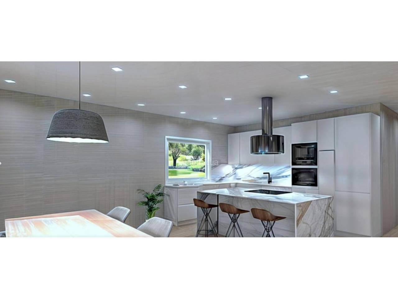 Si continuamos por el pasillo, llegamos al primer lavabo. Siguiendo adelante, el pasillo desemboca en el comedor, que está integrado con una cocina abierta con isla, equipada con una isla central. Frente al comedor se encuentran dos ventanales muy grandes que inundan la estancia de luz.