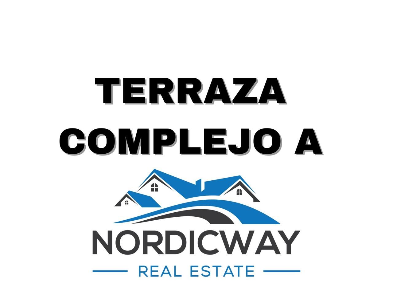 - Exterior: Terraza en planta baja, con escalera de hierro que te lleva a una azotea privativa transitable con césped artificial, tumbonas, muebles de jardín y plantas tropicales.