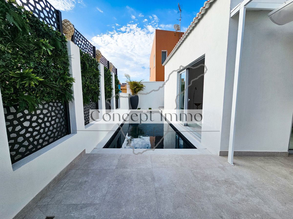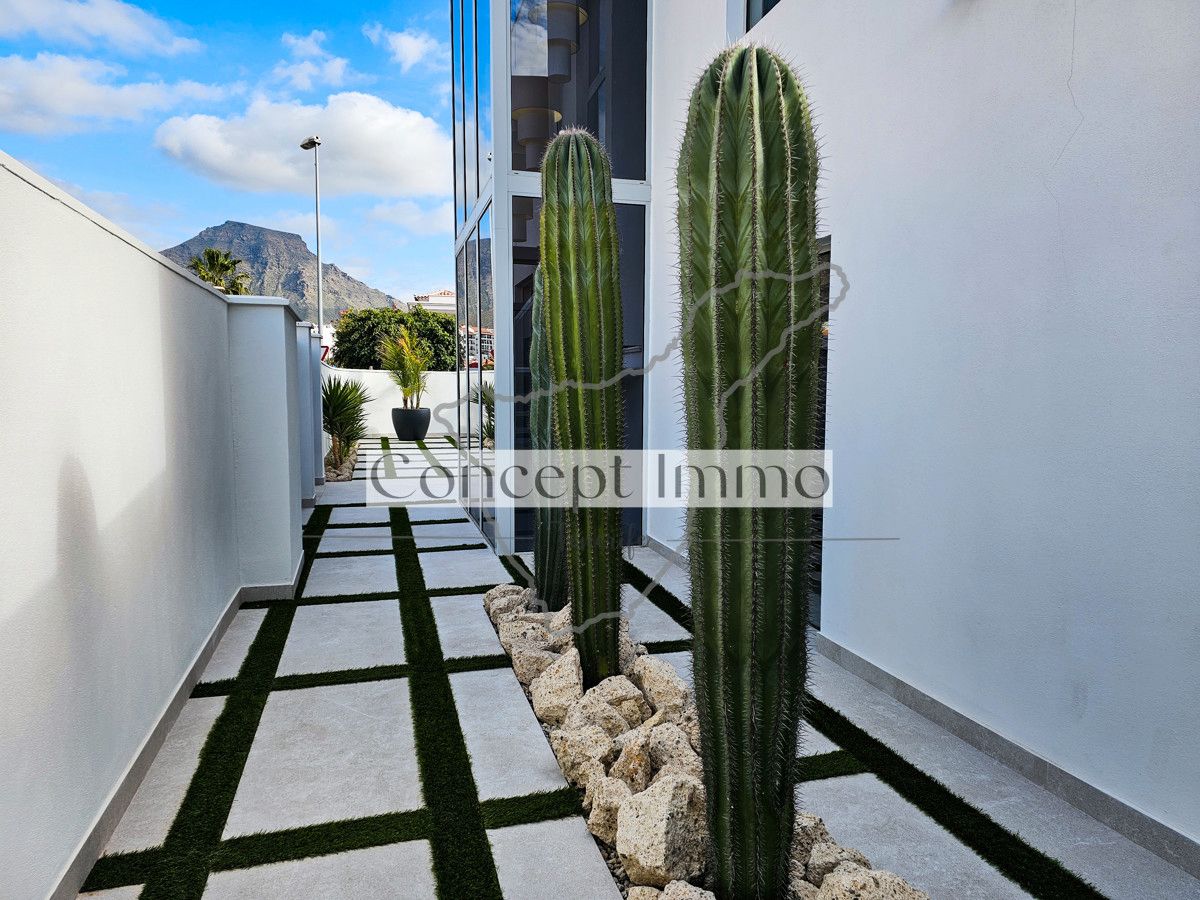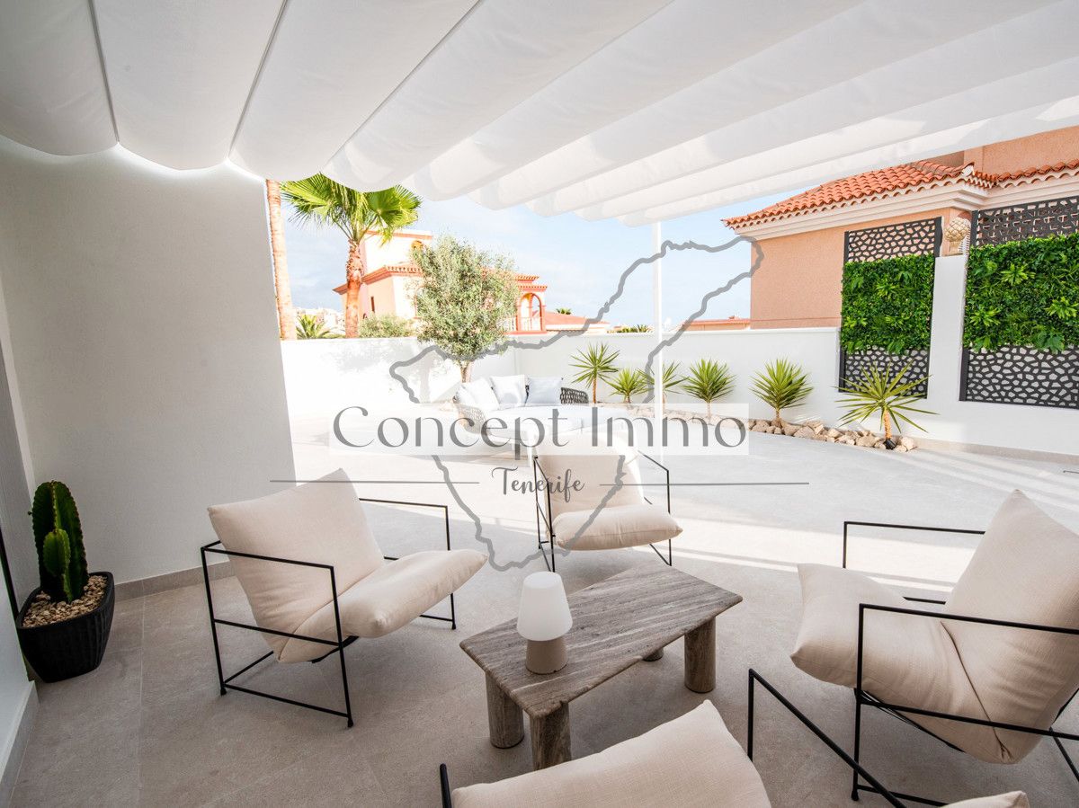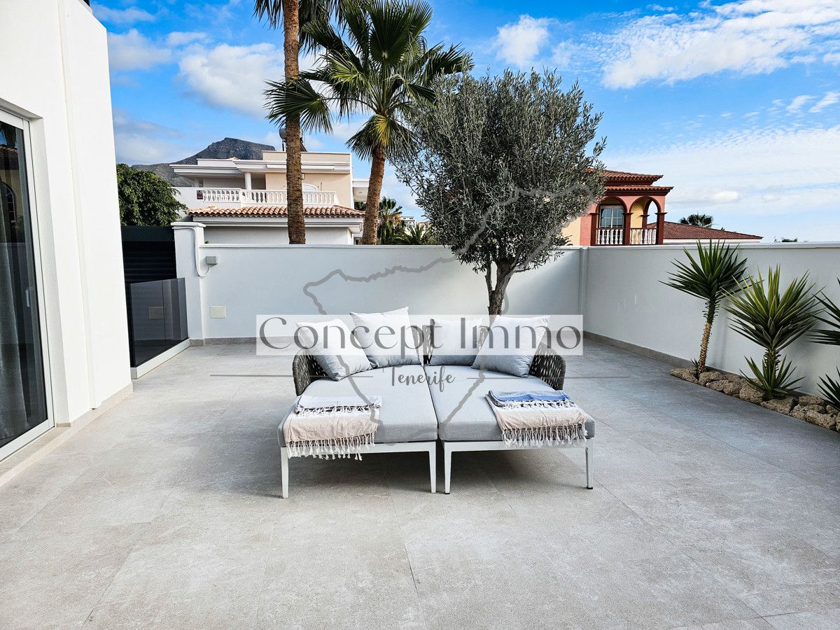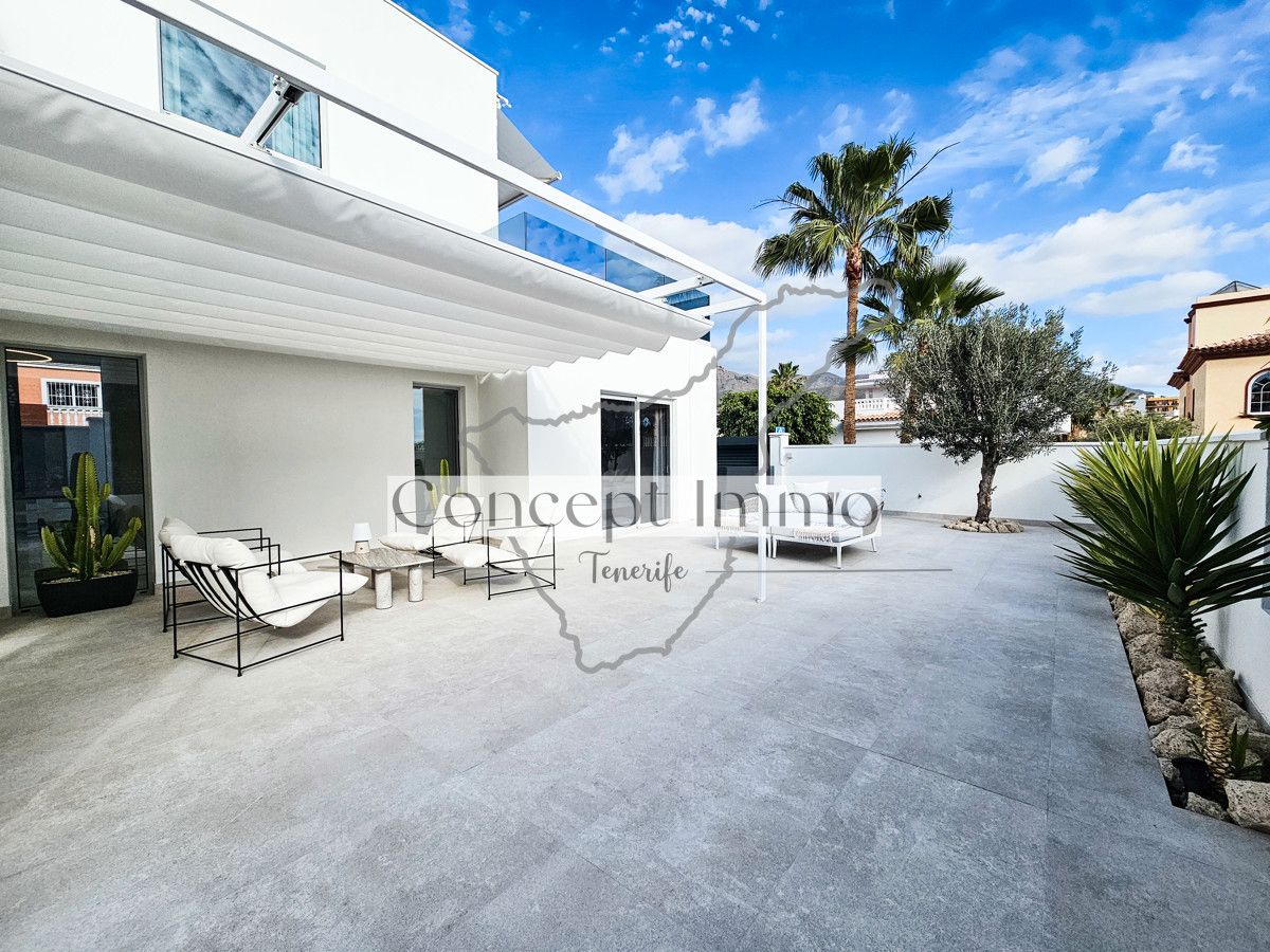 ¡Villa de lujo de diseño moderna y amueblada de alta calidad con piscina climatizada, garaje muy grande y magníficas vistas al mar! Esta espaciosa y moderna villa de lujo fue completamente modernizada, renovada y recientemente equipada con una calidad muy alta en 2023. Consta de 3 plantas y está ubicado en una calle tranquila en la hermosa y privilegiada zona residencial de Adeje, al lado de Barranco del Inglés con su gran infraestructura y fantásticas vistas al mar. La espectacular villa de lujo ofrece 5 luminosas habitaciones en total, incluidas 4 tranquilas habitaciones con baño privado y lujosamente amuebladas. 4 baños modernamente renovados y totalmente equipados. El luminoso salón con techos altos y cocina abierta está equipado con nuevas islas de cocina de granito y electrodomésticos de marca que aún están en garantía. Toda la propiedad está completamente amueblada y decorada de forma moderna y lujosa hasta el último detalle. La amplia terraza con piscina infinita climatizada y zona chill out forman un auténtico oasis de bienestar e invitan a relajarse, pero también ofrecen mucha privacidad y espectaculares vistas al mar y a las montañas. Las magníficas terrazas tienen espectaculares vistas al mar, al Atlántico y a la isla de La Gomera. En el sótano hay un amplio aparcamiento subterráneo con espacio para al menos 3 vehículos y también espacio para salas de ocio como un cine en casa o un gimnasio. ¡Disfrutará de una calidad de construcción muy sólida, puro lujo y un entorno fantástico en Adeje con una excelente infraestructura! - Villa de lujo independiente - Piscina infinita climatizada - 4 dormitorios tranquilos - 4 baños modernos de lujo - Amplio salón con comedor - Ventanas de plástico con doble acristalamiento - Pisos de granito de alta calidad - Mobiliario moderno y de muy alta calidad - Cocina equipada con isla de granito de diseño - Electrodomésticos nuevos con garantía - Amplia terraza chill out - Mucho espacio en el sótano - Amplio garaje para al menos 3 vehículos - Espectaculares vistas al mar y montaña - Disponible inmediatamente Esta lujosa propiedad está ubicada en una zona muy tranquila en Adeje, cerca del Barranco del Inglés. Este bonito y cuidado distrito está situado en la costa sur de Tenerife y pertenece al municipio de Adeje, a unos 10 km de Playa de Las Américas. Particularmente fantásticos son la impresionante costa rocosa y el azul profundo del Atlántico, así como la vista de La Gomera. En tan sólo unos minutos en coche se puede llegar a los mejores campos de golf. Aquí encontrará muchas tiendas turísticas, como tiendas de souvenirs y otros supermercados y tiendas grandes y pequeños. Hay una variedad de buenos restaurantes y bares internacionales. Este encantador complejo vacacional es un buen punto de partida para muchas actividades en la isla, pero también es ideal para relajarse. Vives muy céntrico, pero tranquilo. Está a sólo unos minutos en coche de la hermosa playa y todas las oportunidades de compras se encuentran a poca distancia. La salida de la autopista está a sólo 5 minutos y se puede llegar rápidamente a Los Cristianos o al aeropuerto de Tenerife Sur.