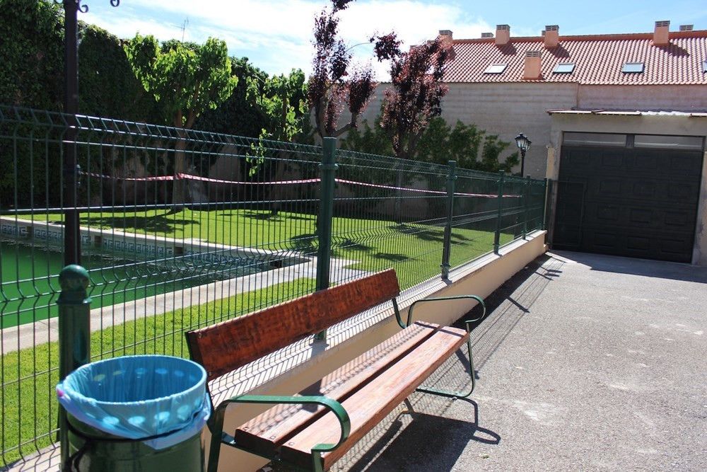 La vivienda, muy tranquila y agradable, amplia y luminosa, en planta baja y una primera planta, con 155 m2 de construcción total y un bonito y amplio jardin con piscina, barbacoa, cenador, etc... comunitaria.
