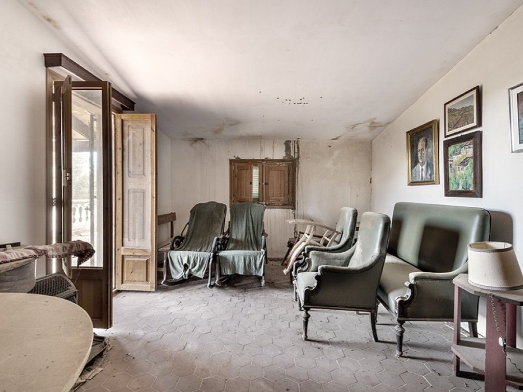 Se sitúa en una parcela de 58.000 m2, con árboles frutales y fantástica vista despejada a la Sierra Tramuntana y al campo. La edificación ocupa 265 m2 y conforma dos plantas conectadas por una escalera rústica de madera.