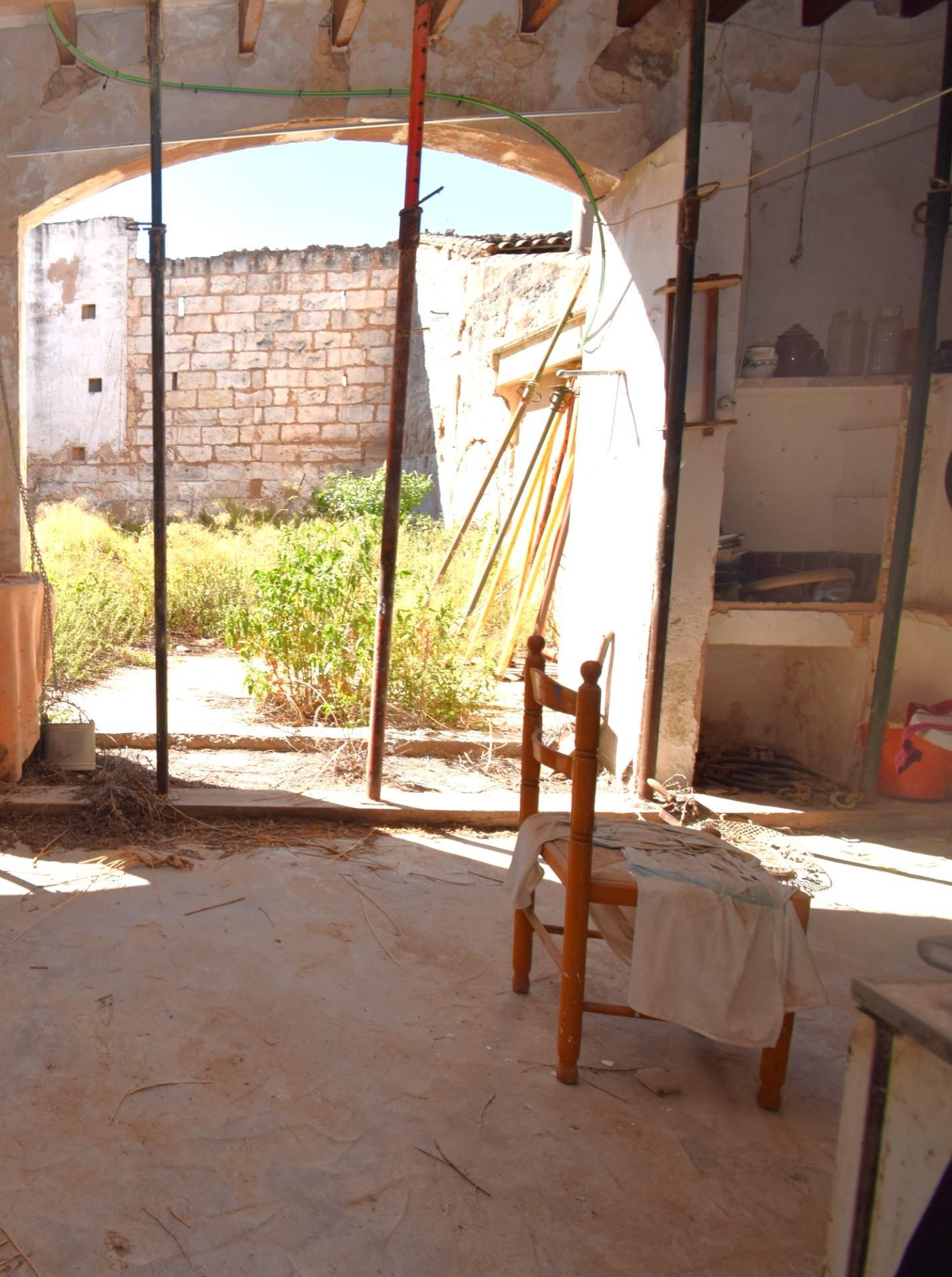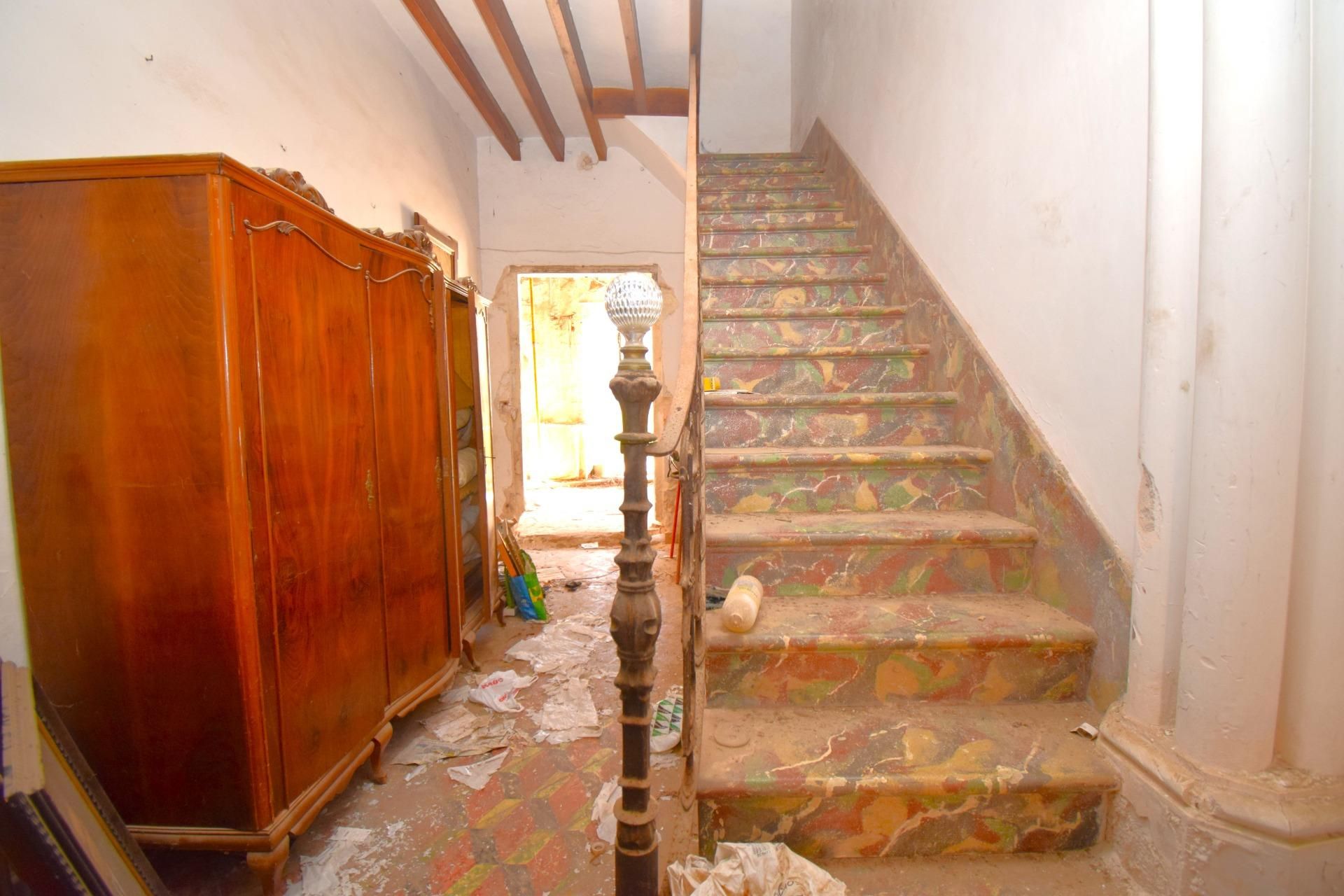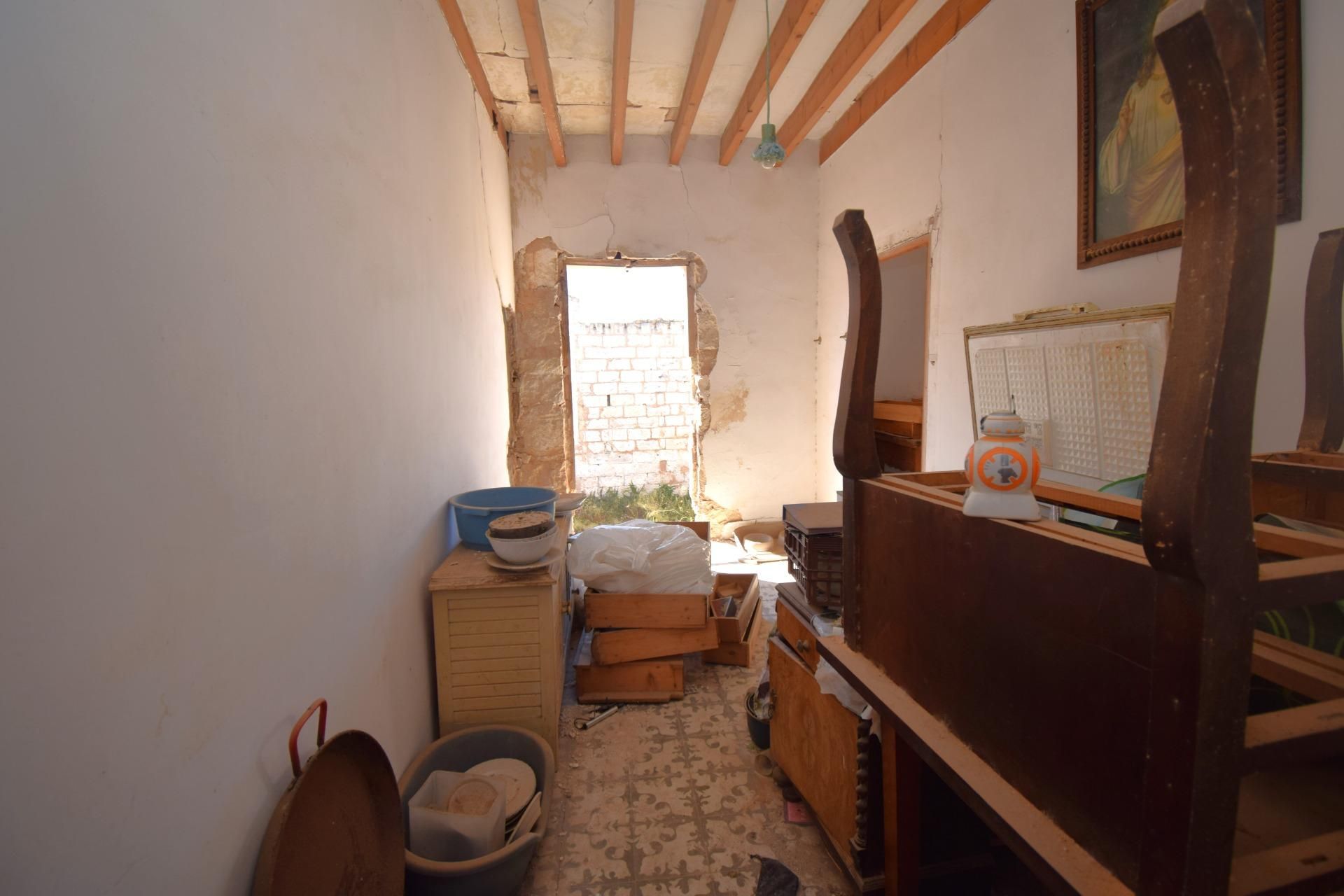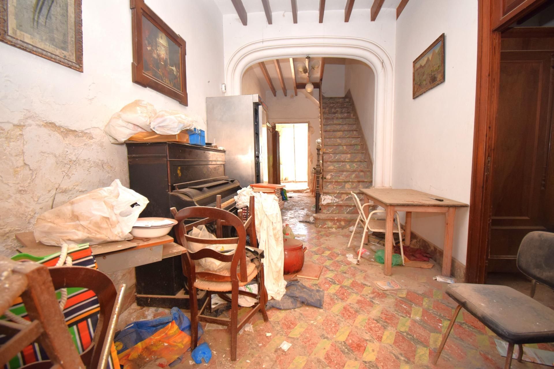 Acogedora casa de pueblo de 153 m² construidos con patio, para reformar completamente, en Sa Pobla. Situada en una calle amplia y céntrica, a solo 3 minutos en coche de la estación de tren.