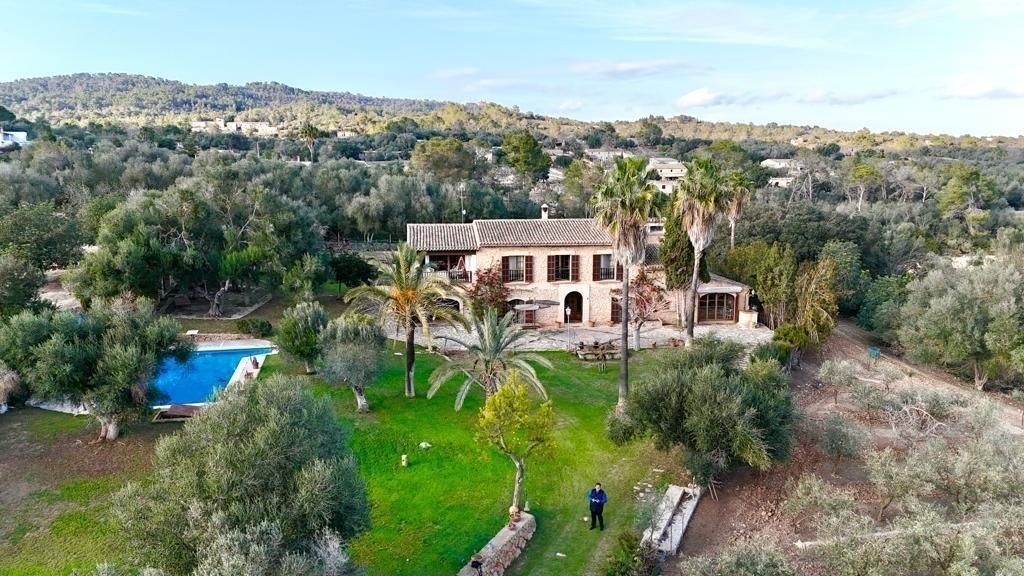 Esta excepcional villa de campo está en venta en Vilafranca de Bonany e impresiona por sus generosas parcelas, su posición elevada, sus pintorescas vistas, sus árboles frutales y su piscina, creando un auténtico oasis de relajación.