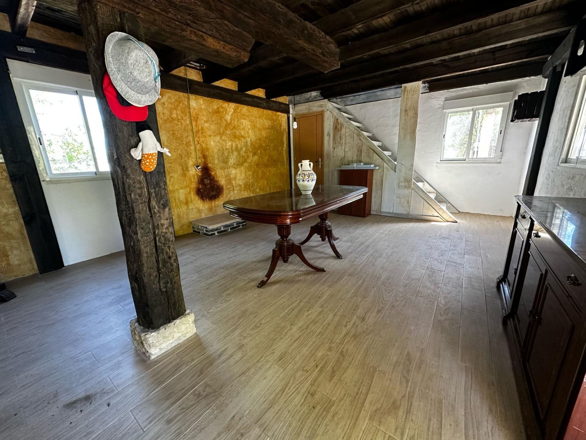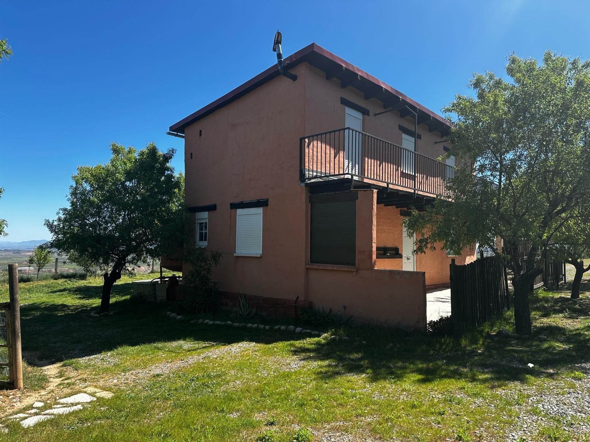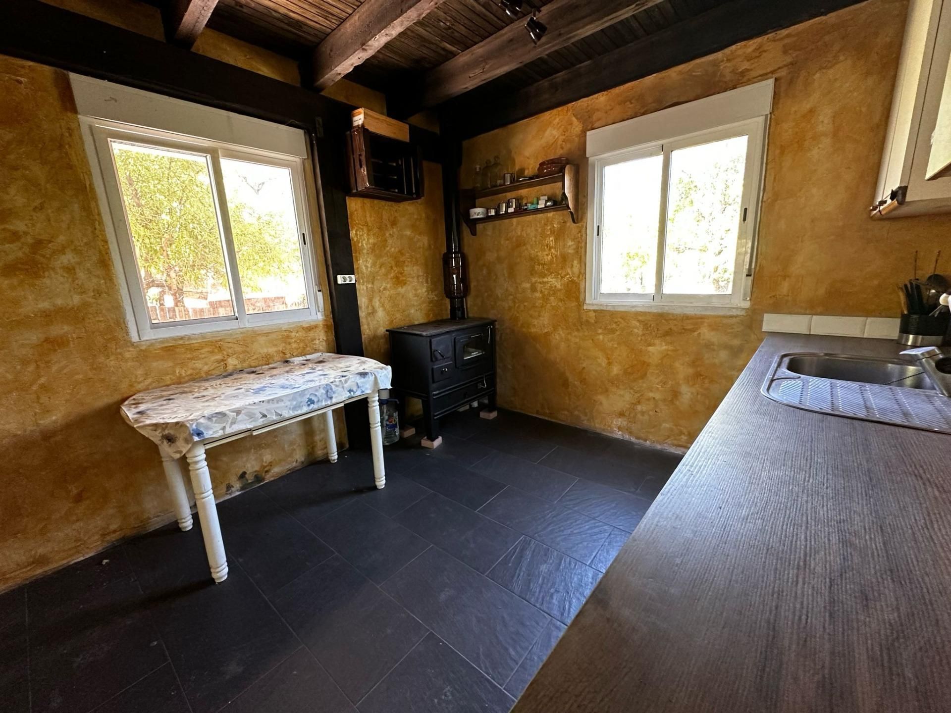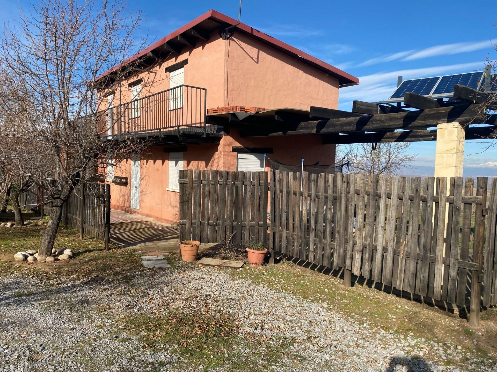 Se vende una finca rústica con una casa de aperos con licencia. .La propiedad cuenta con 40 metros cuadrados en la planta baja y otros 40 metros cuadrados en la planta superior. .En la planta baja, hay una amplia zona de salón merendero y cocina, junto con una chimenea de leña, un baño con plato de ducha y ventana, y un armario leñero..En la planta superior, hay un espacio diáfano pensado para hacer tres dormitorios y una terraza alargada. .La finca tiene un terreno rústico de 2500 metros cuadrados y dispone de dos placas solares..Está totalmente vallada, con la posibilidad de instalar una puerta motorizada. .Sin embargo, no cuenta con agua de pozo, aunque dispone de depósitos de agua. .La superficie total del terreno es de 2.538 metros cuadrados y se accede a través de un camino de tierra. .Además, está ubicado a 1 kilómetro del núcleo urbano más cercano y no es urbanizable. [IW]