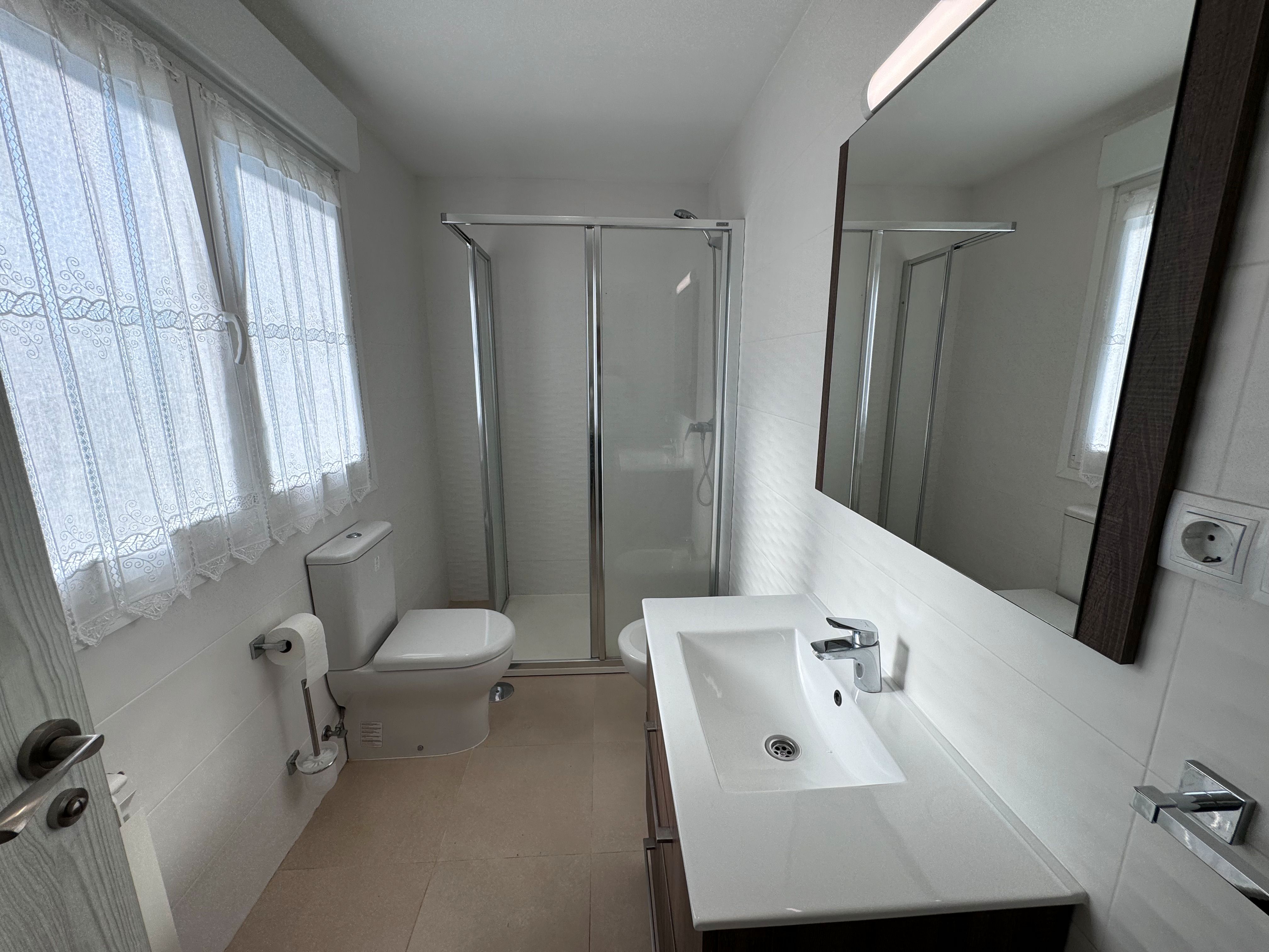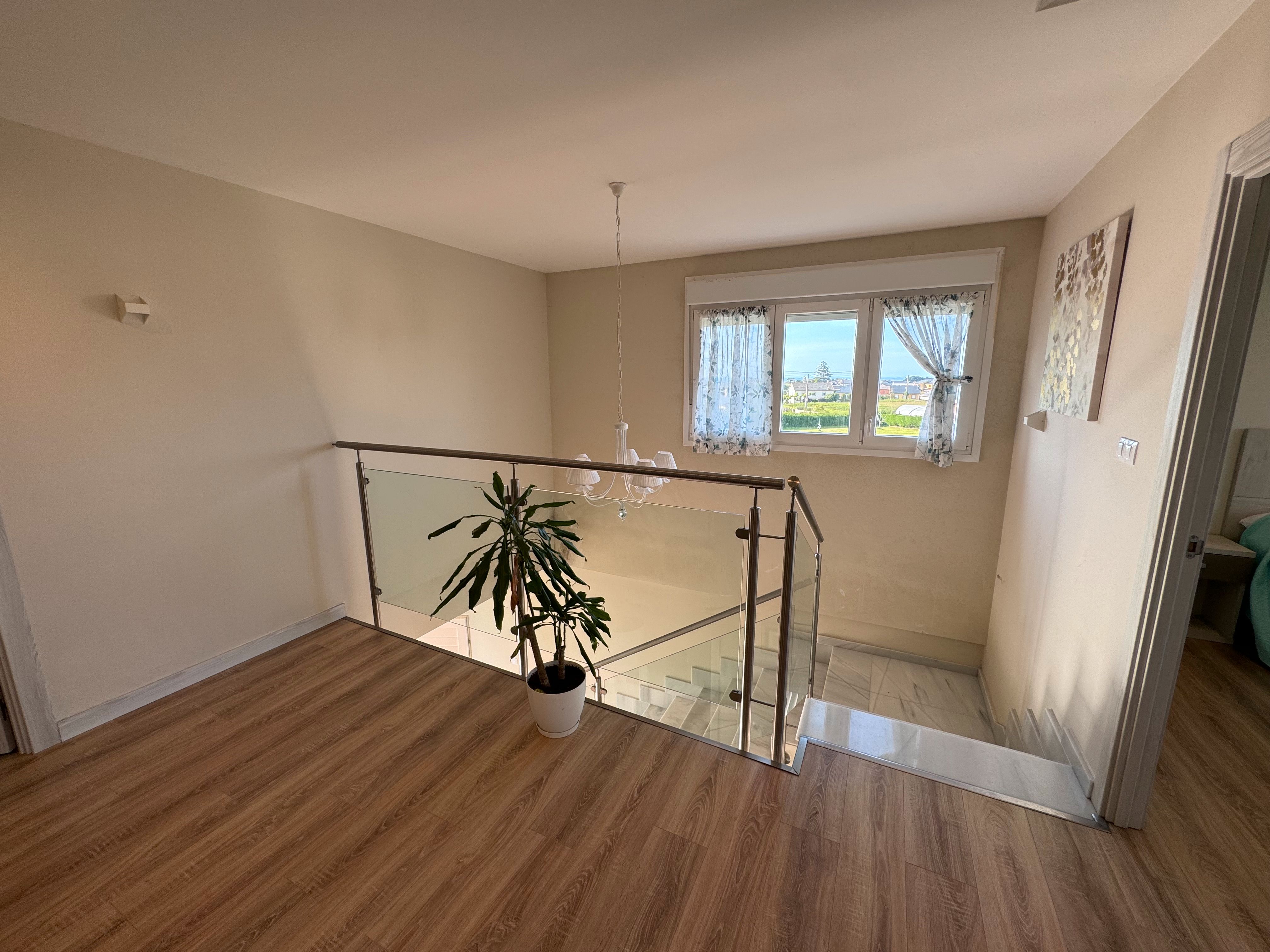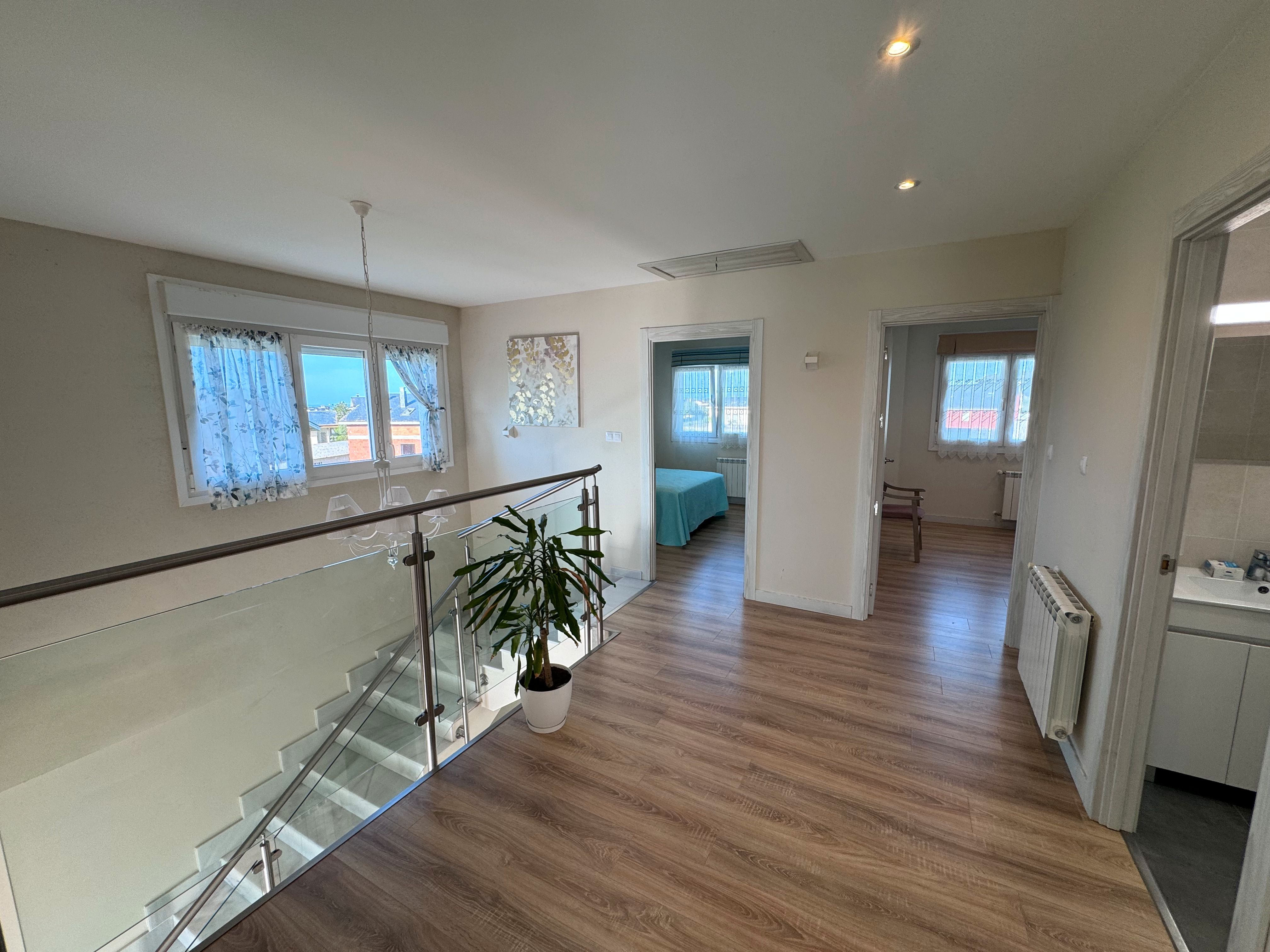 En la planta principal, disfruta de un amplio salón perfecto para reuniones familiares, una cocina independiente equipada con modernos electrodomésticos y una habitación con armarios empotrados y baño en suite. Las escaleras con barandillas de cristal te llevan a la segunda planta, donde encontrarás un gran recibidor, tres dormitorios adicionales y la habitación principal, que también cuenta con baño privado y armarios empotrados.