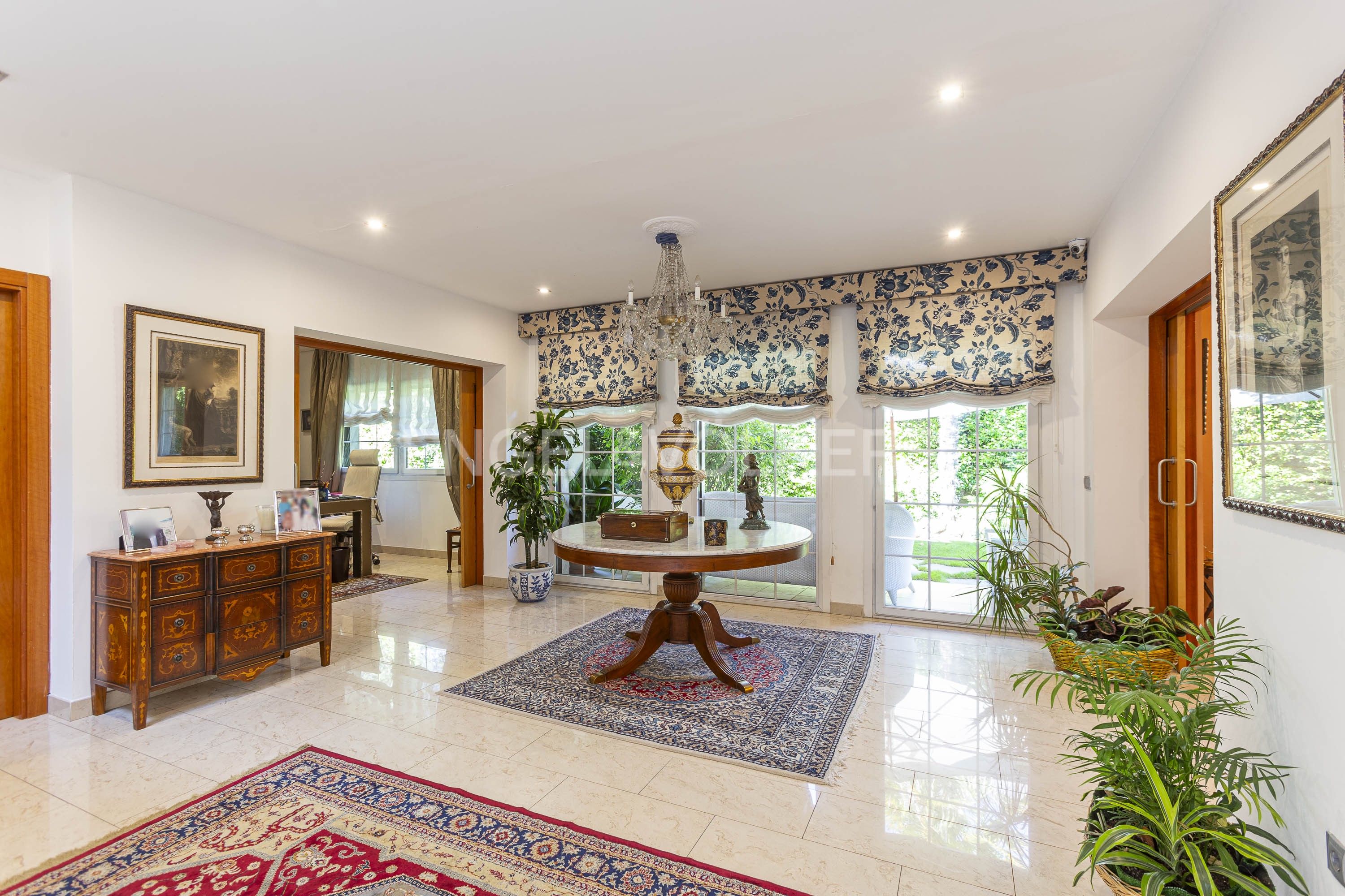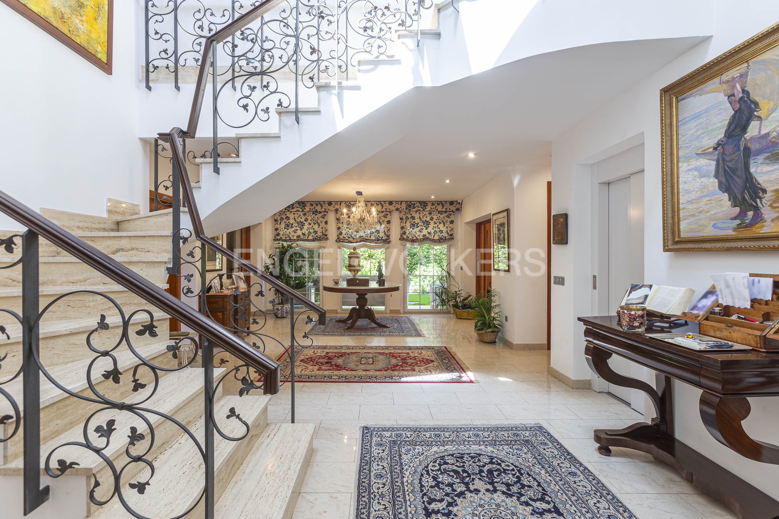 Destaca y enamora por su buen gusto y la comodidad de su distribución. Impecable, su vestíbulo de acceso con doble altura separa la parte pública de la zona privada y de servicio de la casa.