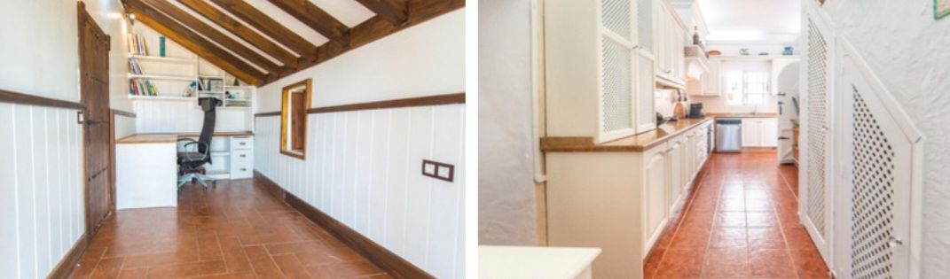 A un lado del salón hay un despacho y al otro lado la zona de descanso con 3 habitaciones dobles y un baño. Las 3 habitaciones tienen acceso directo al jardín.