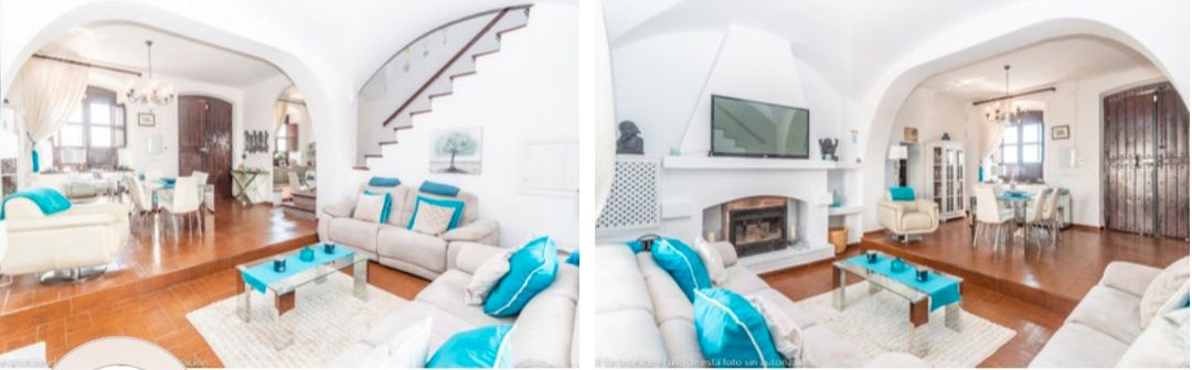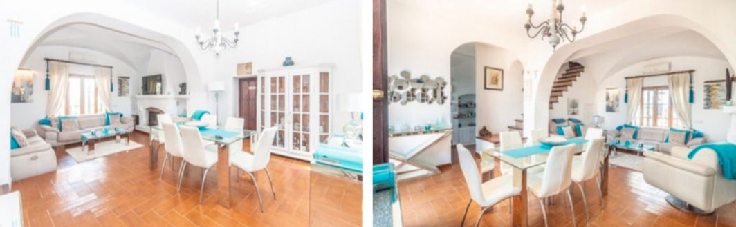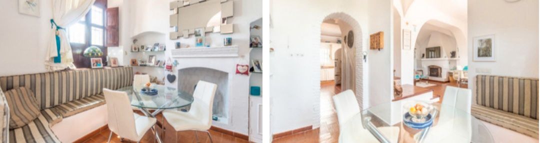 Planta baja: Salón con chimenea con acceso a un patio interior. En el salón también hay una zona de comedor. Cocina totalmente equipada con acceso al patio interior y una segunda zona de comedor con chimenea.