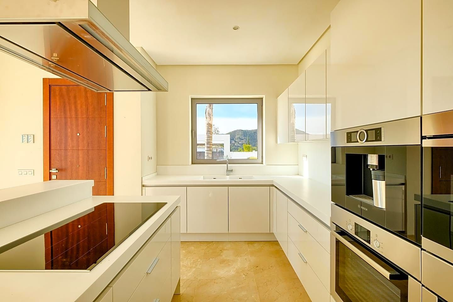 NIVEL PRINCIPAL: El salón conduce a las terrazas con la elegante piscina infinita a través de grandes puertas de cristal, desde donde se pueden apreciar las impresionantes vistas panorámicas al mar y la montaña. La cocina independiente está totalmente equipada con electrodomésticos BOSCH y dispone de lavadero independiente. Hay dos dormitorios de invitados, un baño privado y un aseo para invitados.