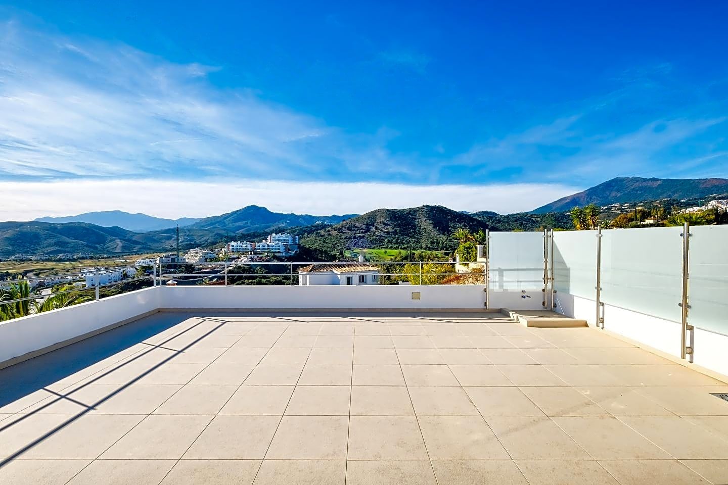 NIVEL SUPERIOR: El nivel superior consta de la impresionante suite principal con vestidor propio, baño privado y acceso a la terraza con vistas espectaculares. También hay un solárium de 64 m2 que se podría adaptar a zona de entretenimiento con cocina exterior, jacuzzi y vistas increíbles.