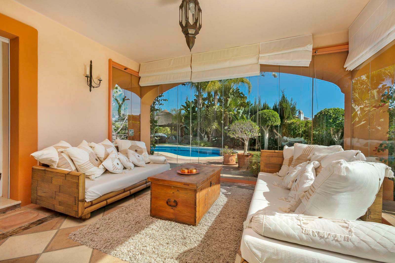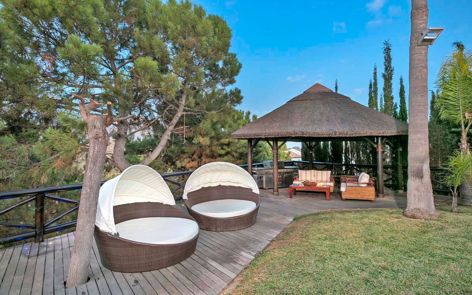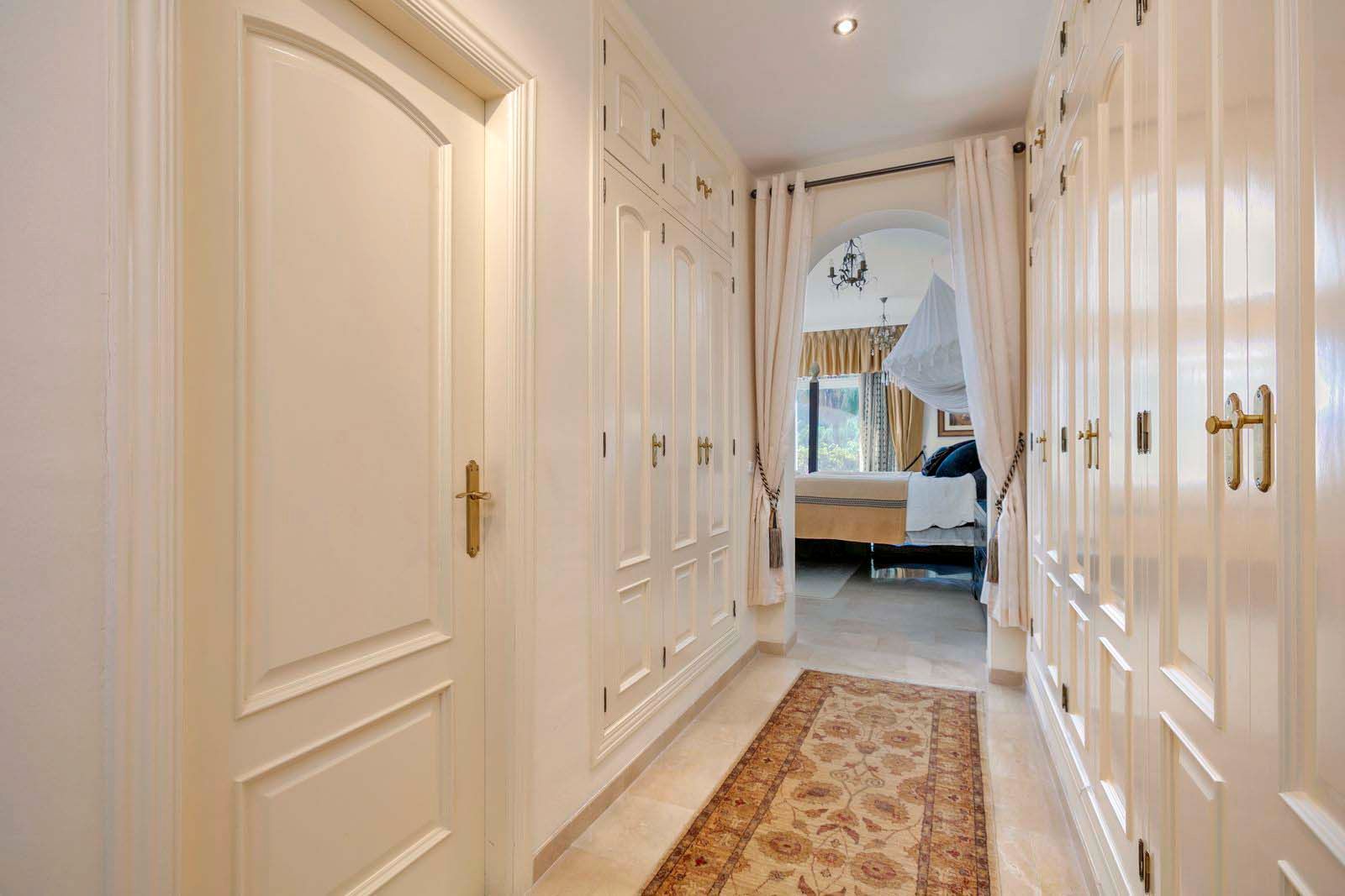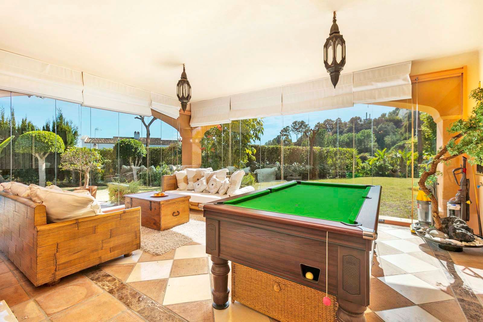 Magnifica villa en la Quinta, Benahavis, excelente situación con vistas panorámicas. La villa está construida en una parcela de 1700m2, haciendo esquina. Tiene 686m2 construidos y 126m2 de terrazas. Zona tranquila y bien comunicada cerca del club de golf y a poca distancia en coche de Puerto Banus. Tiene un bonito jardín en un terreno totalmente llano de césped, piscina de agua salada con terraza y cenador al aire libre con barbacoa. La casa tiene 4 dormitorios, 4 baños y aseo de cortesía. Está distribuida en tres niveles. Nivel principal con un amplio hall de entrada con un techo alto con cúpula, salón comedor con chimenea y acceso al porche acristalado con zona de estar, cocina totalmente equipada con zona de desayuno y acceso a una terraza acristalada, dormitorio de invitados con baño en suite y terraza con vistas. Planta primera 3 dormitorios y 3 baños en suite el dormitorio principal con vestidor, baño con jacuzzi y amplia terraza con vistas al mar y a la montaña. La planta del semi sótano, de 300m2 está a nivel del jardín, con un gran potencial de desarrollo. Actualmente hay una oficina, almacén, sala de máquinas, cuarto de servicio y un espacioso garaje. Además hay amplia zona de aparcamiento en la parcela en superficie. Suelo radiante en baños, aire acondicionado frío-calor en toda la casa con unidades individuales en cada habitación, calefacción central por radiadores. Gastos comunidad 23€/mes, IBI 2657€/anuales