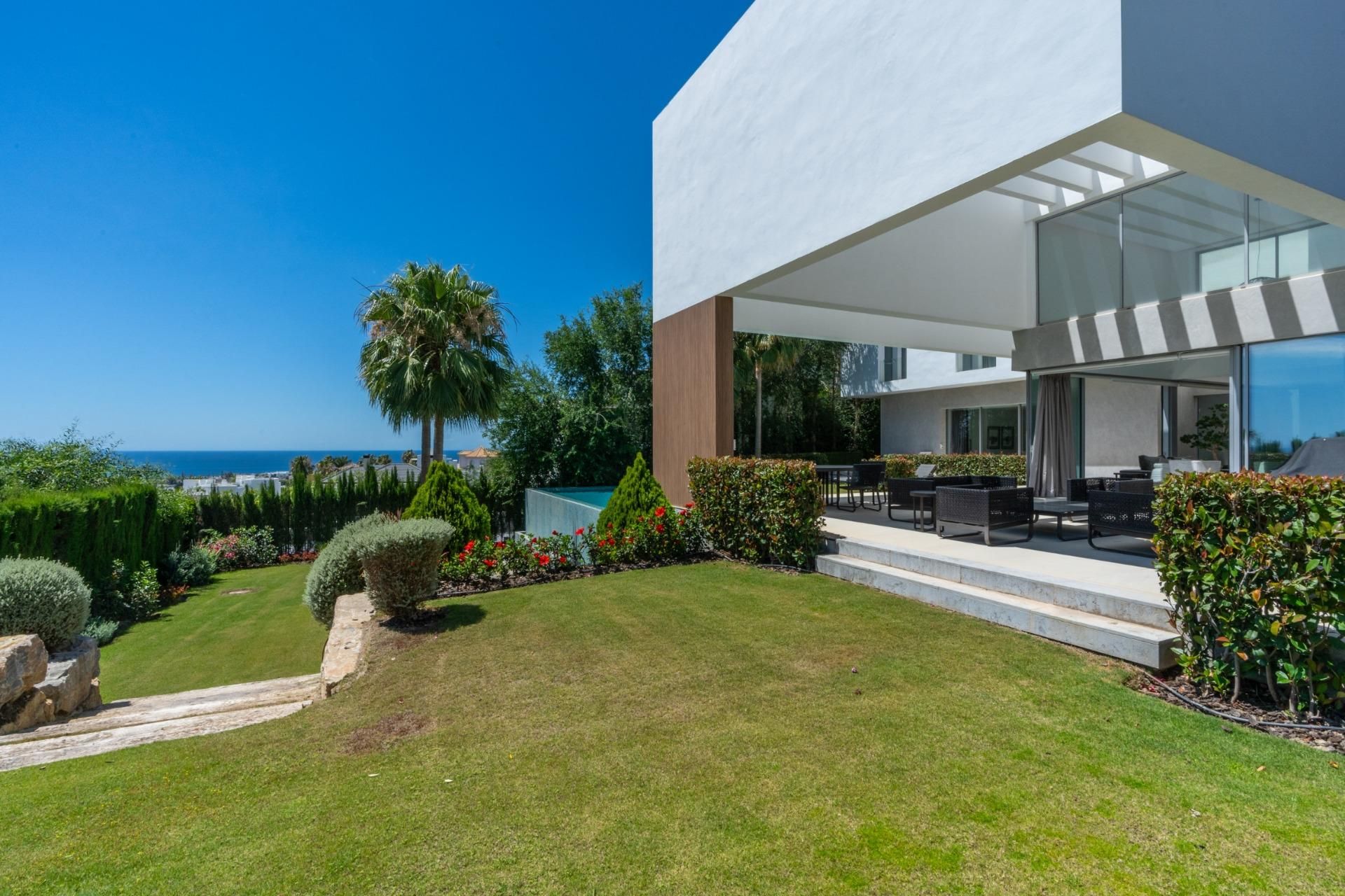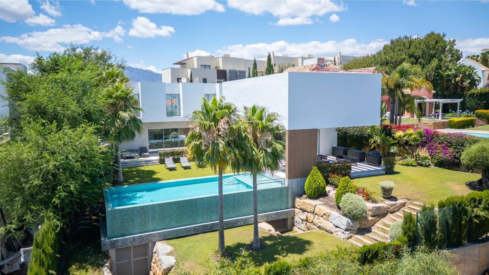 Villa de lujo de reciente construcción en Los Flamingos, en una ubicación privilegiada a solo pasos de Villa Padierna, los mejores campos de golf de la zona, el Club de Tenis Bel Air, supermercados y todo tipo de servicios. La urbanización cuenta con una entrada segura con vigilancia las 24 horas y está convenientemente situada a solo unos minutos de San Pedro, Puerto Banús y Estepona.