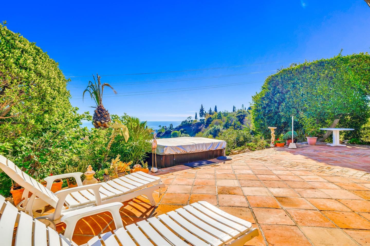 Exterior: Ubicada en una parcela elevada que garantiza impresionantes vistas al mar y al entorno natural. Rodeada de árboles maduros y jardines, la villa se beneficia de una amplia terraza cubierta con zonas para comer y relajarse, así como de una piscina privada y un jacuzzi. Además, hay una cochera cubierta para dos vehículos.