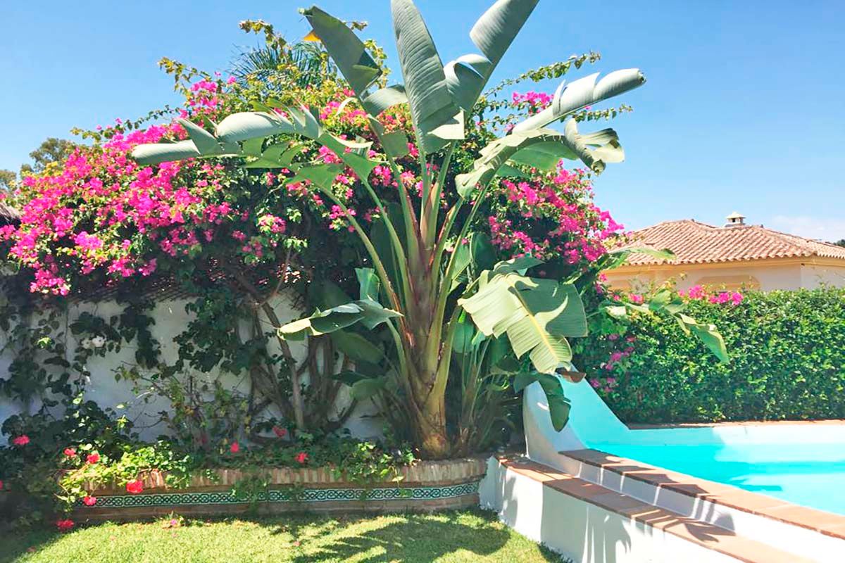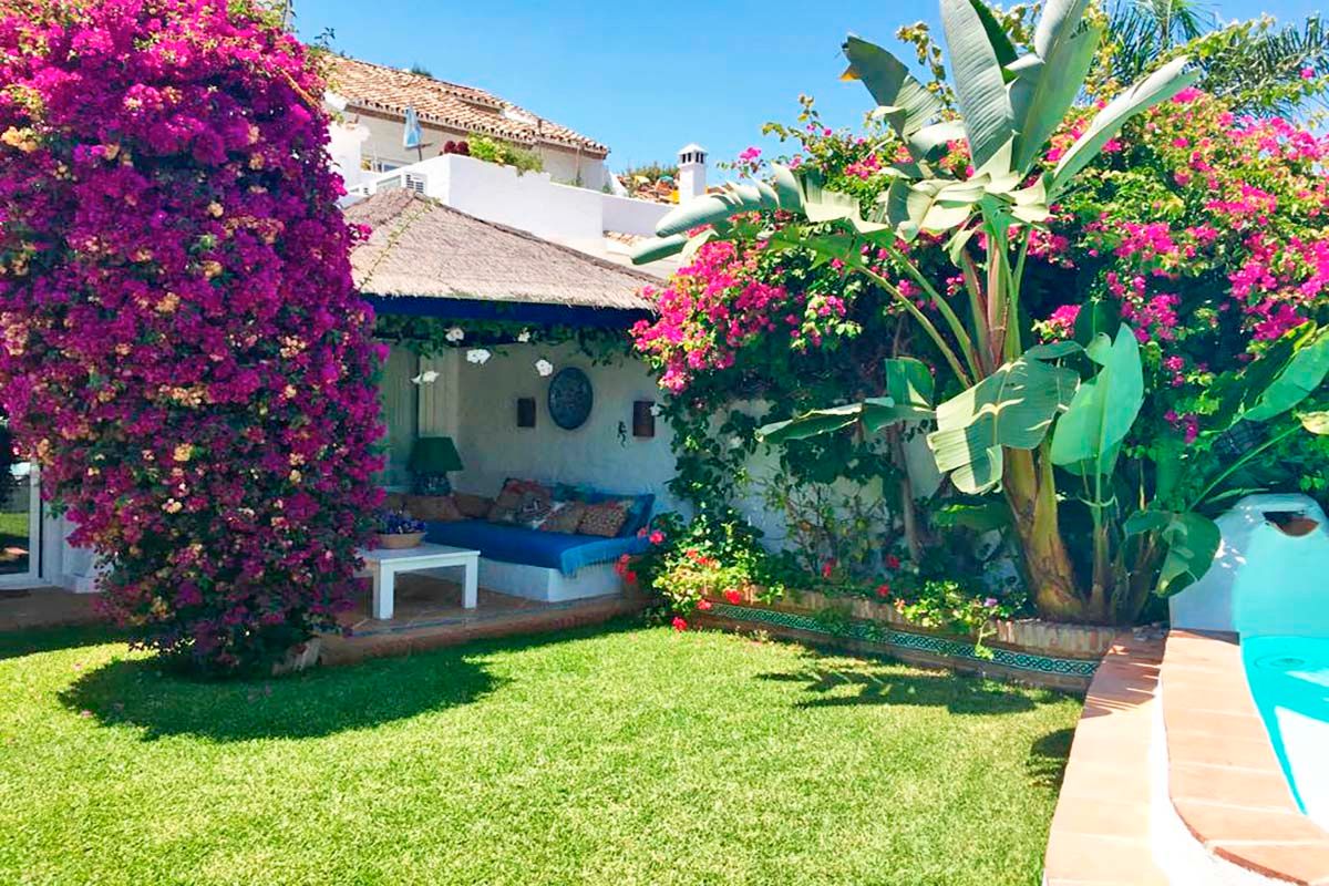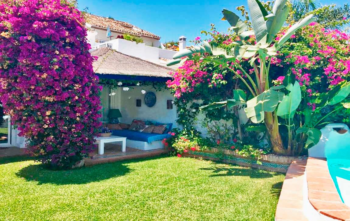 Venta chalet con encanto en Marbella con una ubicación privilegiada a 400 metros de Puerto Banus, con todos los servicios cercanos. Orientado al sur con 350m2 de parcela y 300m2 construidos, con un jardín privado de 180m2 con piscina privada, 2 amplios porches con zona de barbacoa. La casa está distribuida en dos plantas tiene 4 dormitorios más uno de servicio, 3 baños y aseo de cortesía en la planta principal encontramos hall de entrada, amplio salón comedor de 75 m2 con chimenea, distribuido en tres ambientes, zona de comedor, salón, zona de lectura, cocina equipada, aseo de cortesía, zona de servicio, lavandería y caldera. Planta primera 4 amplios dormitorios dobles 3 baños y terraza solárium. Doble acristalamiento, suelo de mármol, calefacción, aire acondicionado frío-calor, plaza de garaje. La urbanización tiene además jardines y piscina comunitaria.