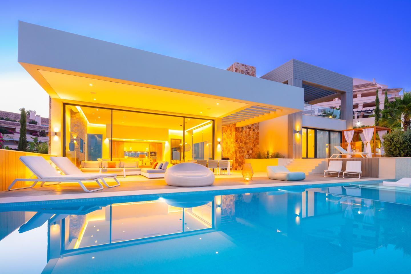 Esta exclusiva villa de lujo está situada en el prestigioso Valle del Golf de Marbella. Goza de increíbles vistas al mar y hasta la costa africana. Está cerca de Puerto Banús y Marbella, colegios internacionales, restaurantes, tiendas y todas las comodidades.