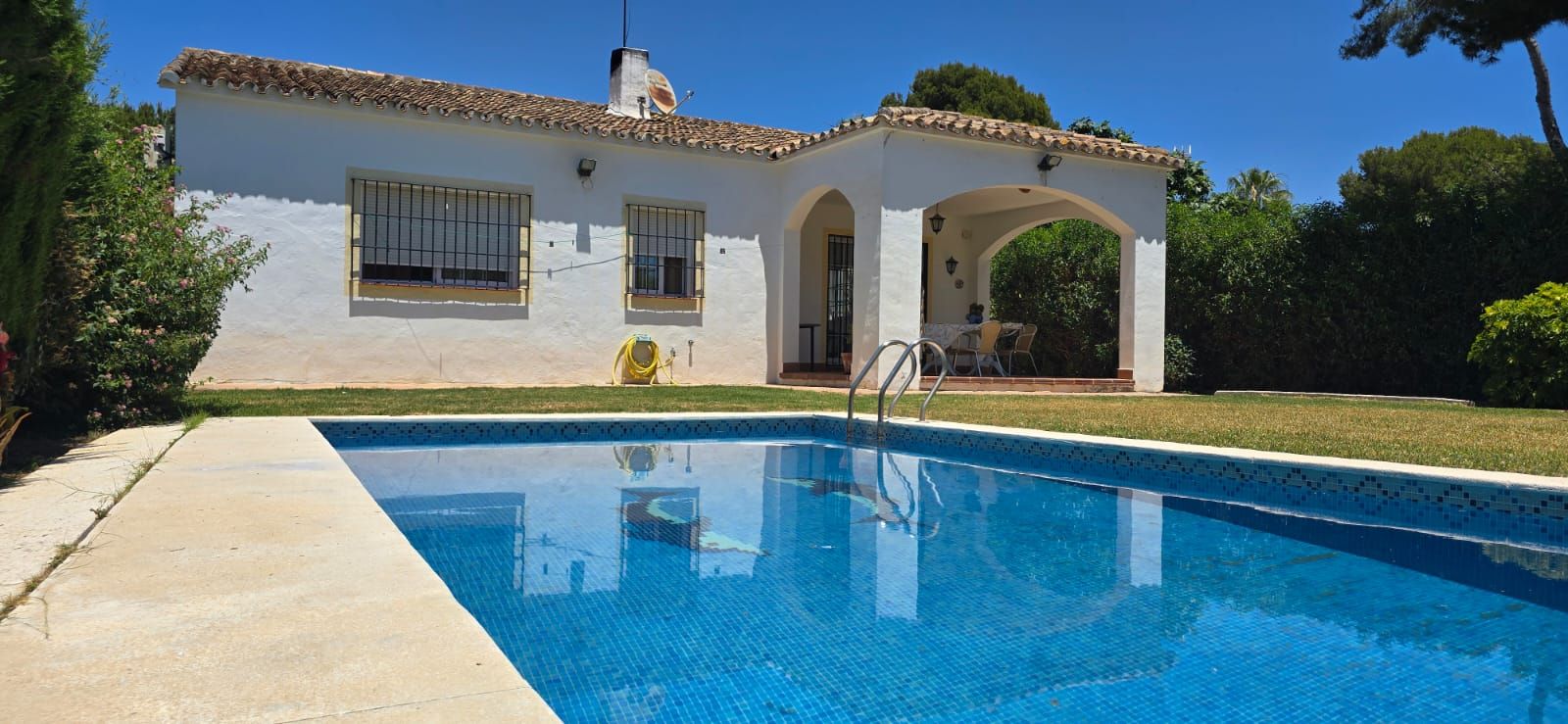 ¡Descubre tu nuevo hogar en esta espectacular villa privada e independiente, estilo andaluz! Situada en una parcela de 600 m², esta vivienda independiente de una sola planta ofrece 200 m² construidos y 160 m² útiles, ideal para disfrutar de la vida en familia. Con 4 amplios dormitorios y 3 baños, esta casa combina comodidad y elegancia en cada rincón. Además, cuenta con una cocina de verano equipada con barbacoa y horno de leña, perfecta para organizar inolvidables reuniones al aire libre frente a la piscina.