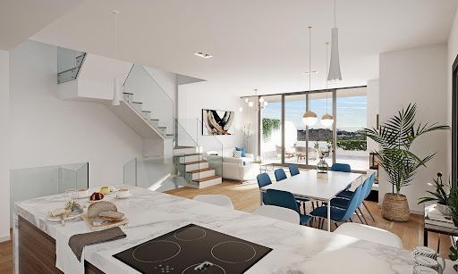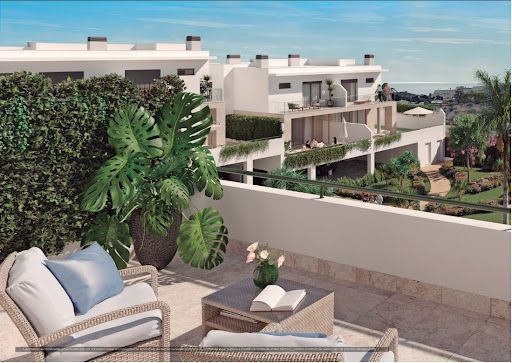 Conjunto de 16 viviendas pareadas en La Cala de Mijas, junto a campos de golf. Dos plantas más sótano. Desde 201m2 construidos y 166m2 útiles distribuidos en PLANTA PRINCIPAL: Acceso a vivienda con jardín de entrada, hall distribuidor, aseo, cocina open space amueblada y equipada al salón comedor y acceso al porche de 18m2 y terraza de 30m2. PLANTA ALTA: Acceso por escaleras, dormitorio principal con baño en suite y terraza privada, dos dormitorios secundarios con baño compartido. PLANTA SÓTANO: Espacio diáfano de 18m2 como sala multiusos y baño completo. Desde la planta sótano se accede al garaje con dos plazas incluidas en el precio. Las viviendas se entregan con suelo de gres porcelánico, armarios empotrados, aire acondicionado centralizado con bomba de calor mediante sistema de aerotermia, carpintería exterior de PVC con doble cristal, puerta principal de seguridad y video portero. ¡Nuevo complejo residencial disponible! Recinto con bonitos jardines y piscina comunitaria. Complejo situado junto a diferentes campos de golf, a escasos minutos en coche de comercios, restaurantes, supermercados, centros escolares y la playa, donde podrá disfrutar de un maravilloso paseo junto al mar por la Senda Litoral. Fecha prevista de entrega para el 2º semestre de 2025.