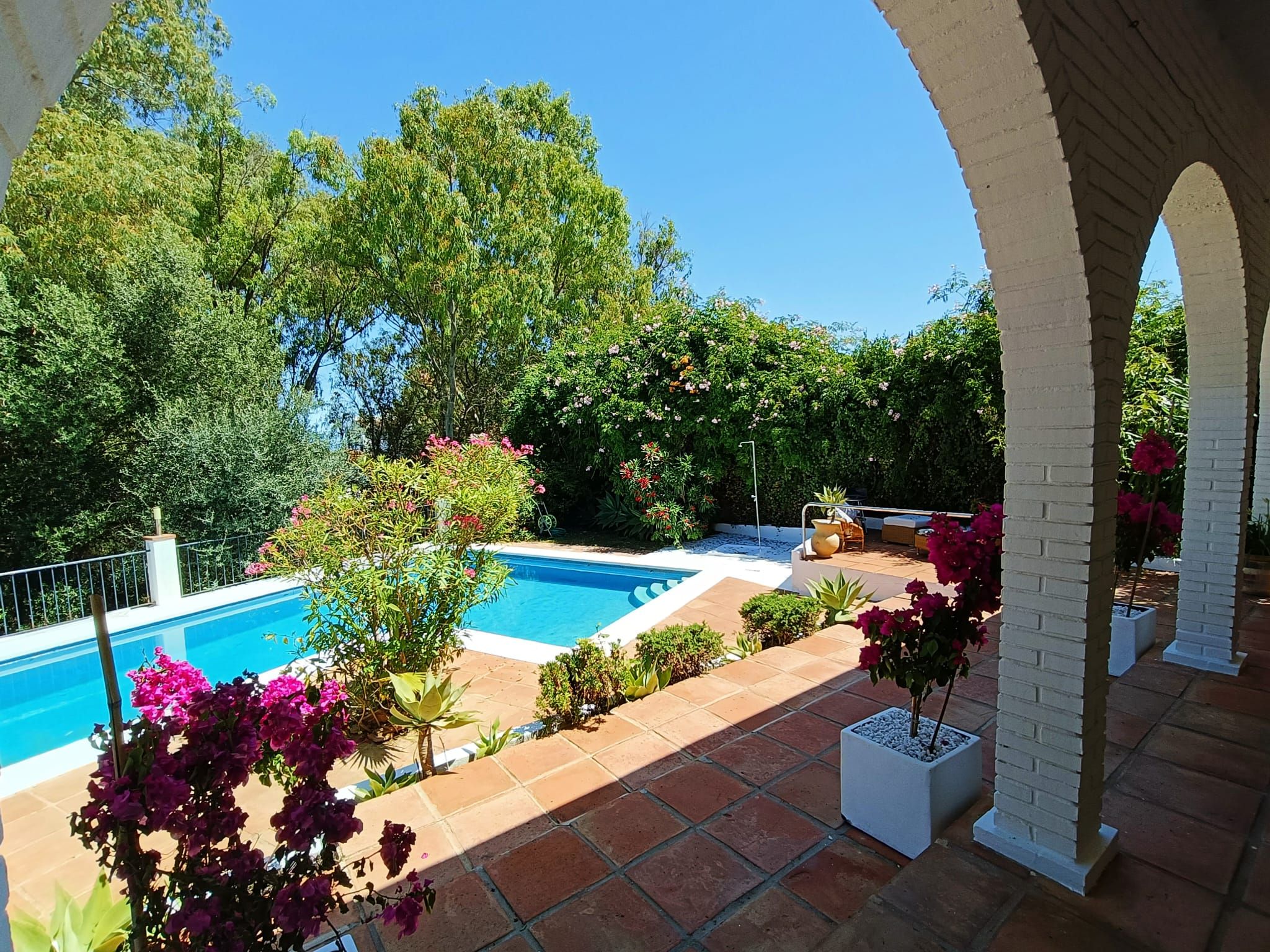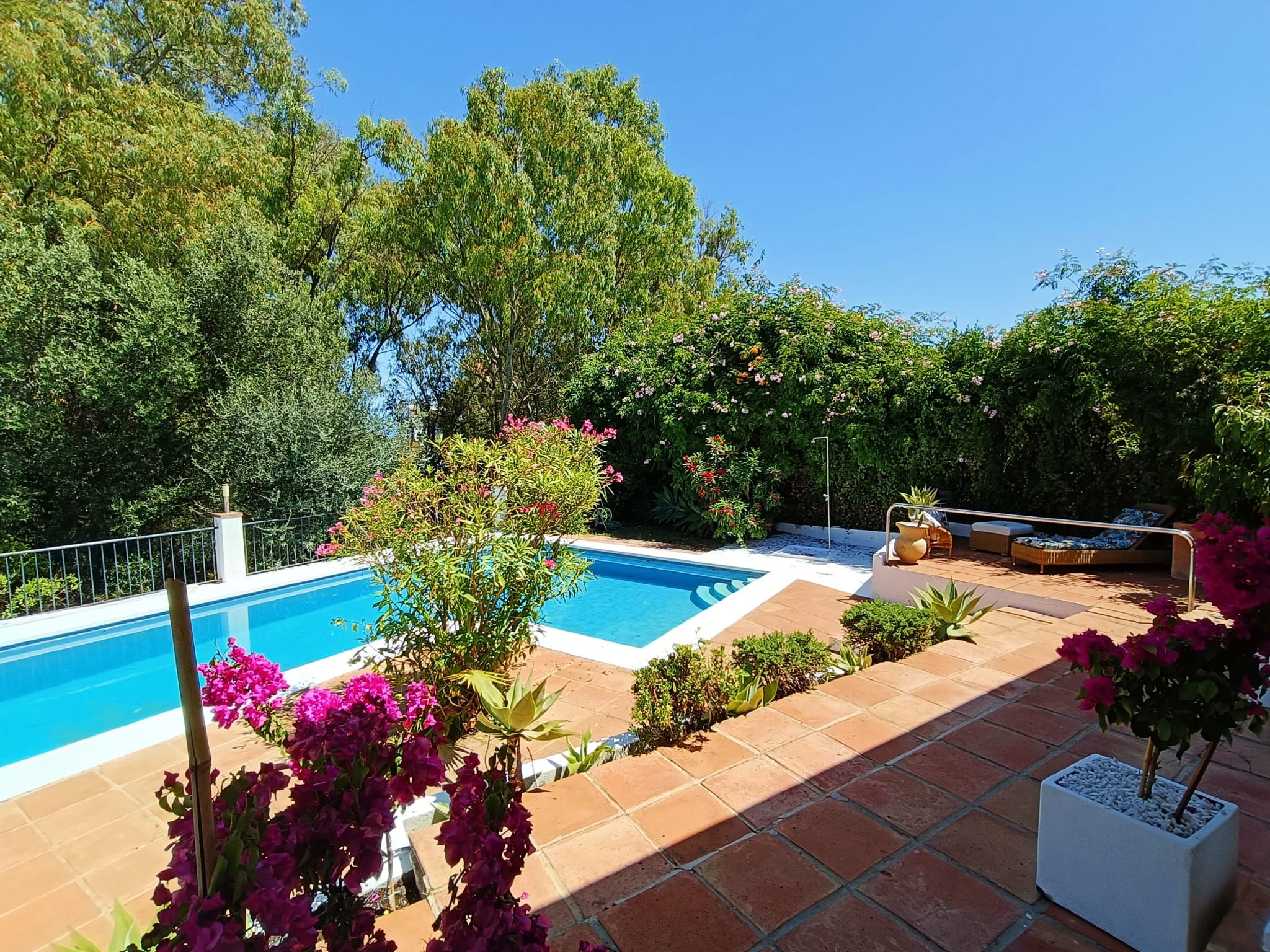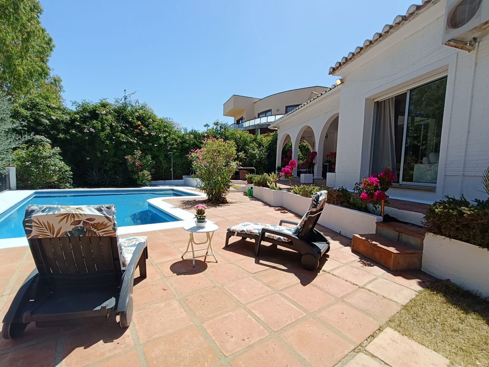 Un gran jardín delantero, el jardín trasero con espacio chill-bbq, amplia terraza y una piscina privada.