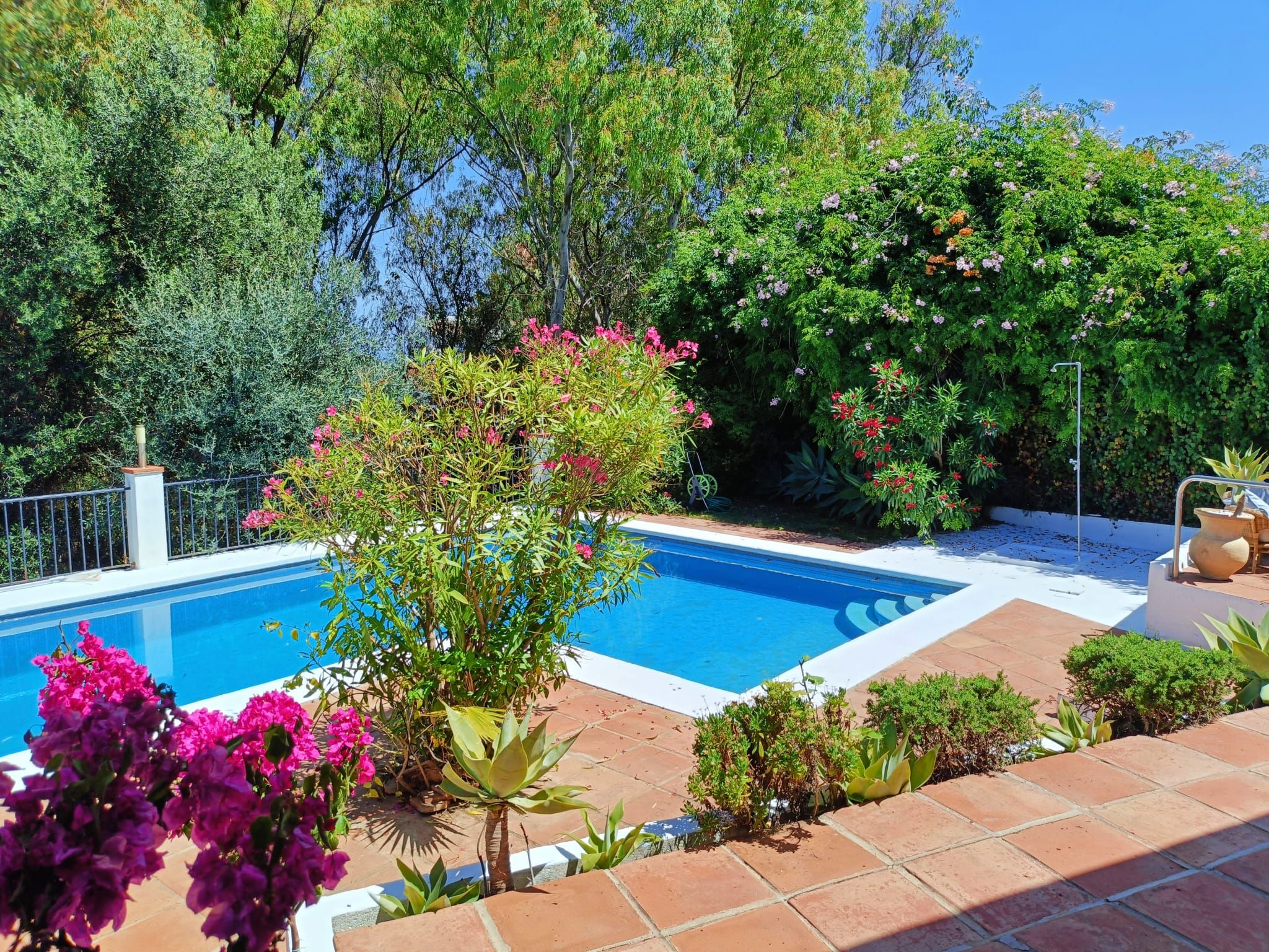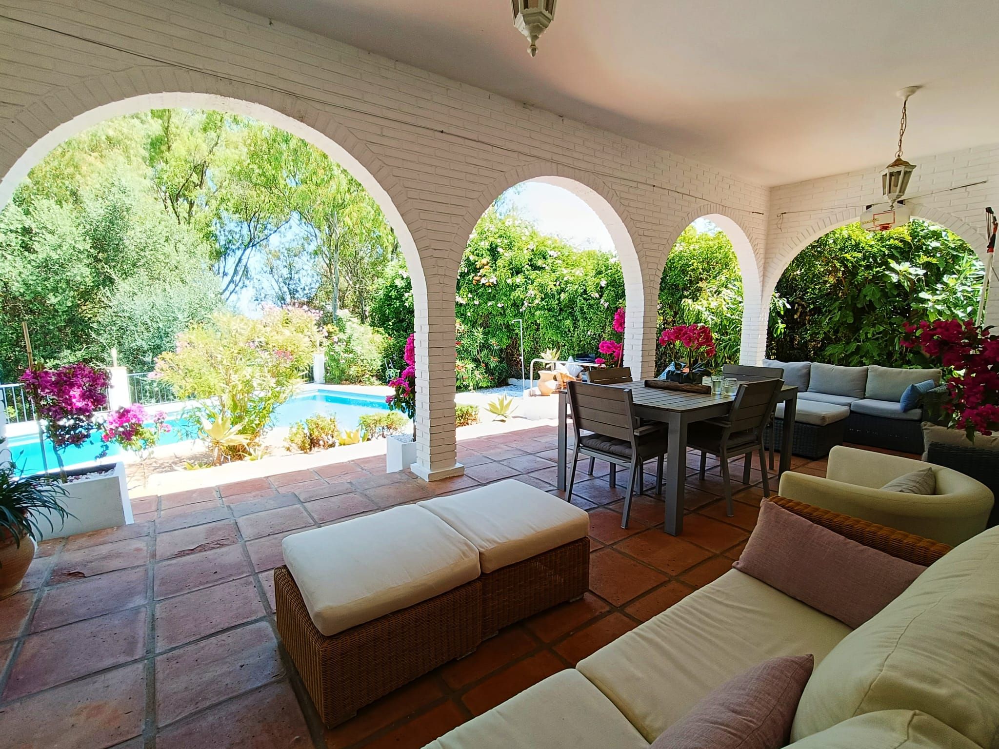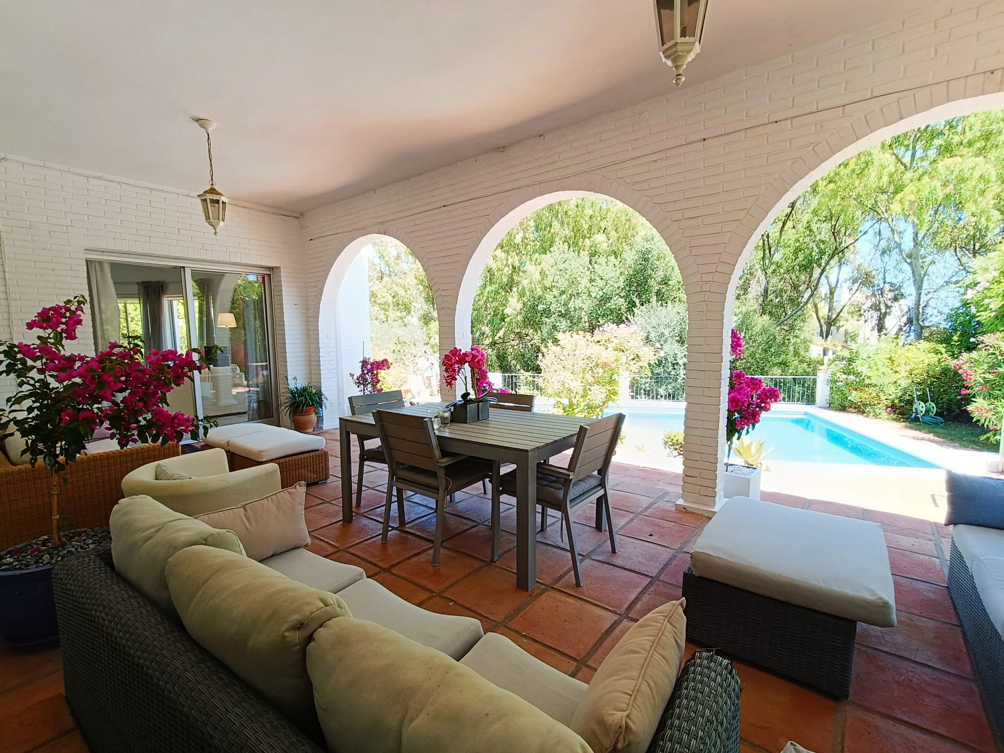 Un gran jardín delantero, el jardín trasero con espacio chill-bbq, amplia terraza y una piscina privada.