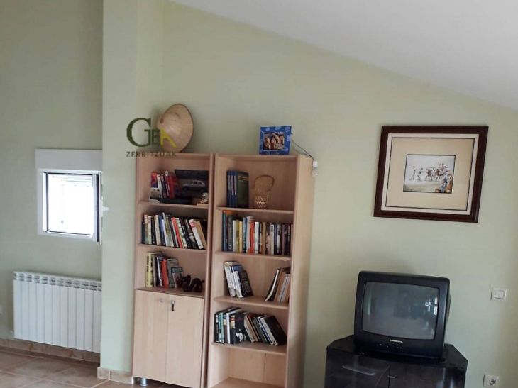Planta baja: Hall de entrada, aseo, cocina salón y despensa. Desde la primera planta se accede a la terraza y al txoko.