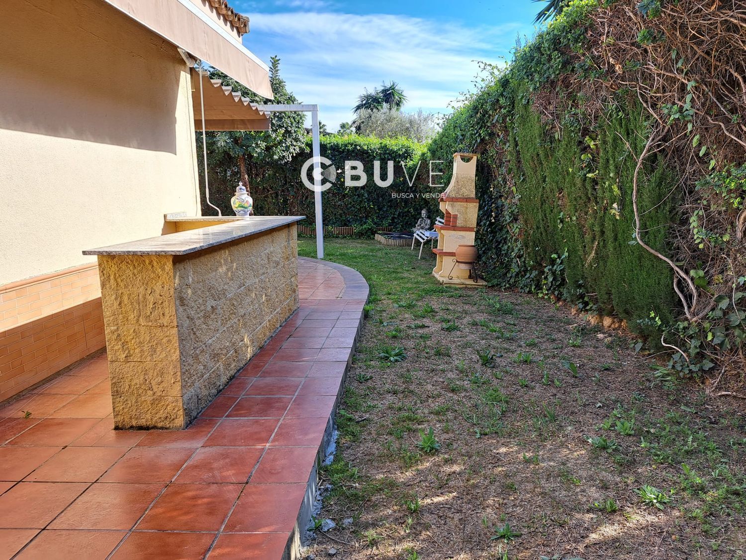 - El jardín también cuenta con una segunda terraza, una barra de bar y una barbacoa de obra, perfecta para disfrutar de reuniones al aire libre.
