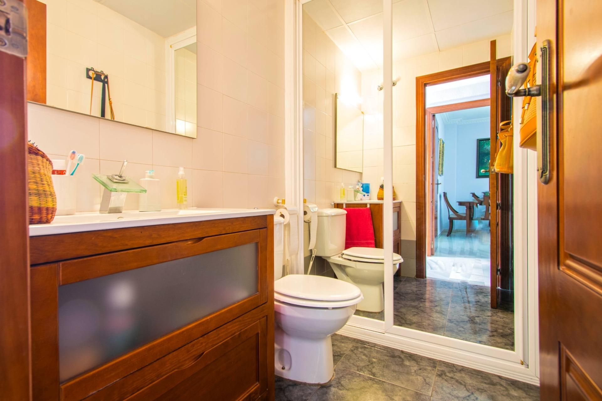También tenemos un baño completo a modo de aseo, con el hueco del plato de ducha que se podría volver a colocar.