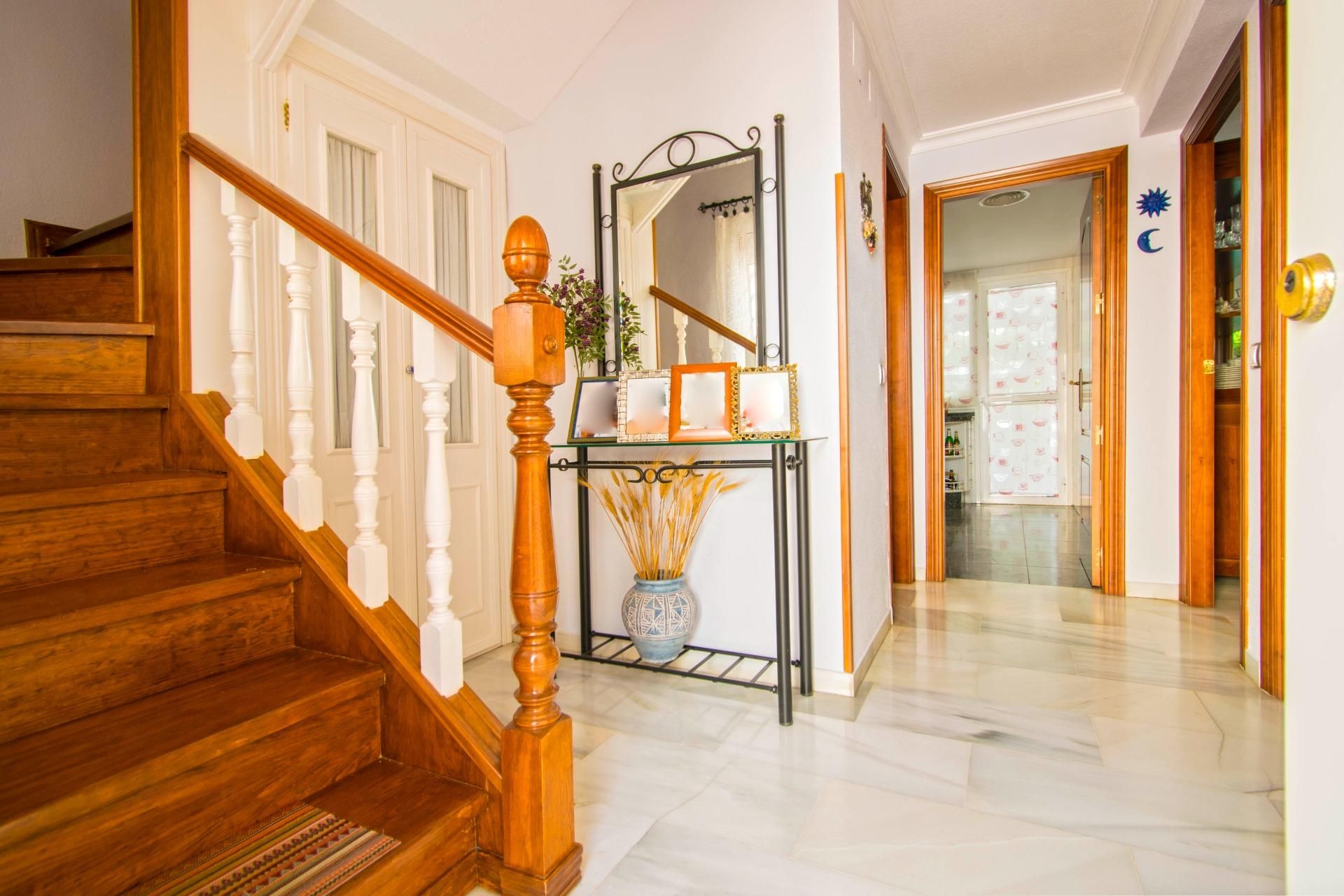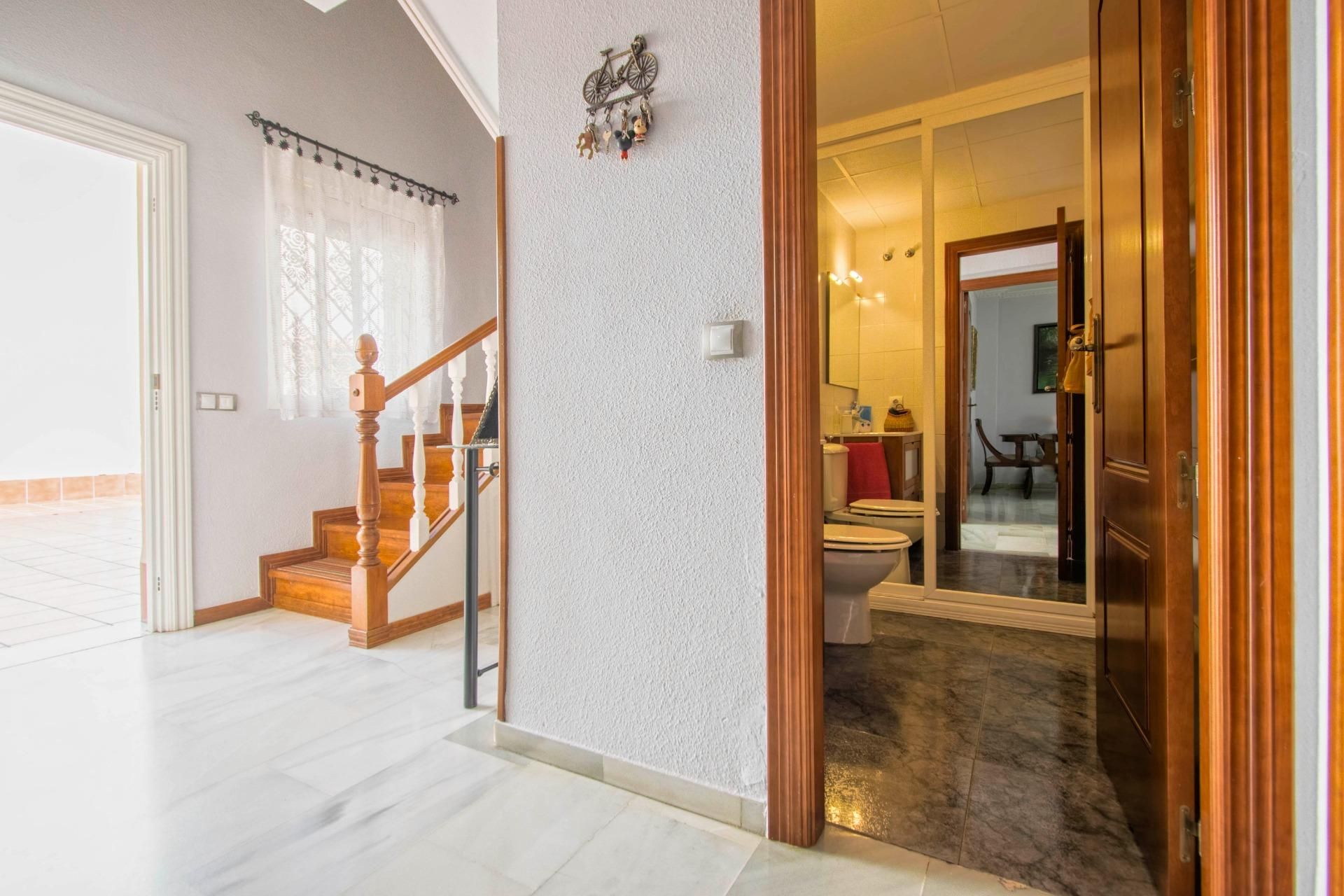 Suelos de mármol, puertas de madera, y ventanas de aluminio y rejas en todas las estancias.