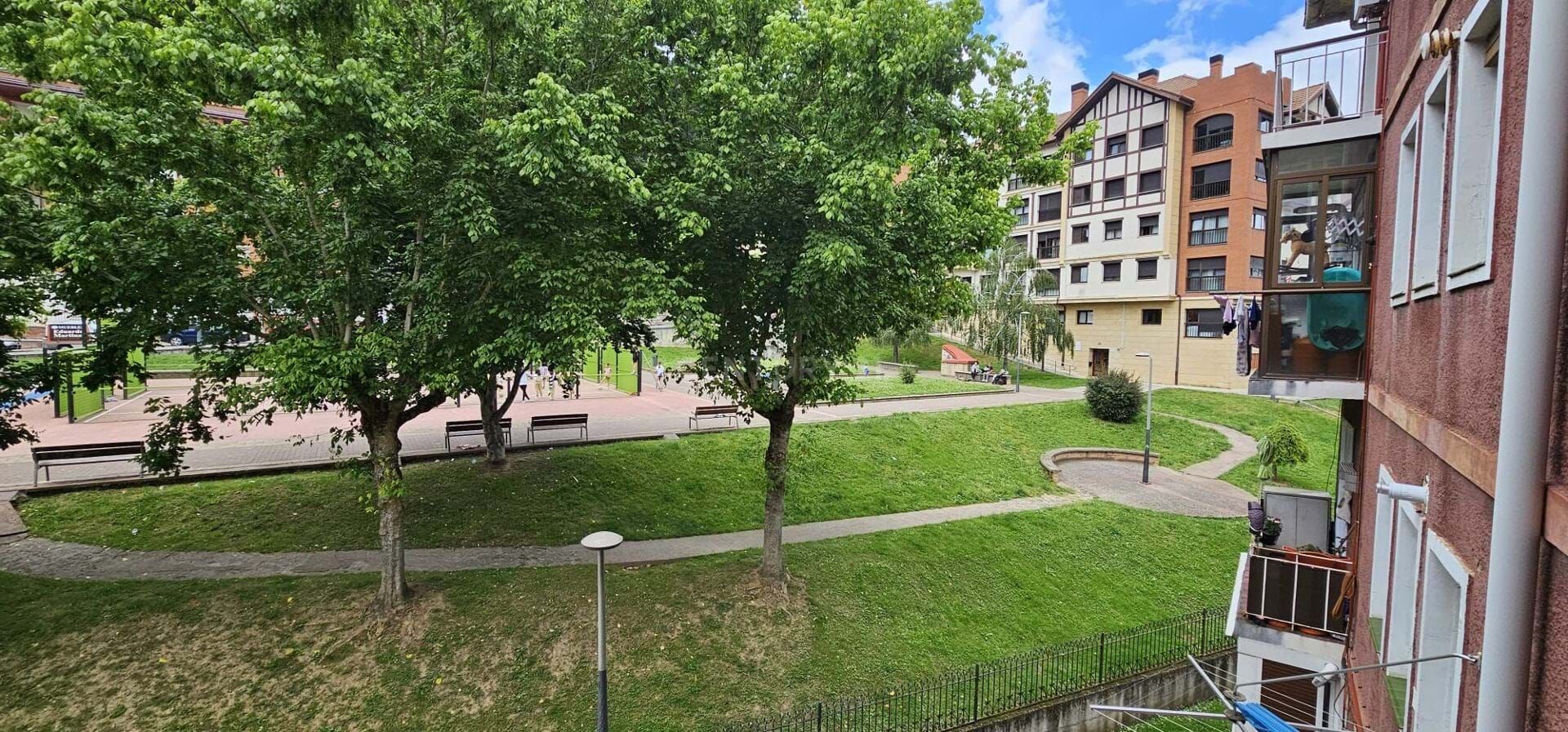 Todo el piso es absolutamente exterior, con vistas a unos árboles y parque de niños por un lado, y el parking comunitario y exclusivo de los vecinos por otro.