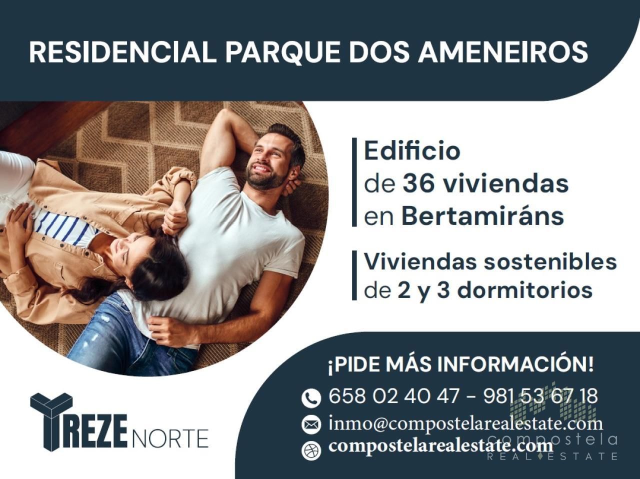 Parque Dos Ameneiros, un nuevo proyecto residencial de 36 viviendas, en un entorno natural con vistas a zonas verdes, próximo a la ciudad de Santiago de Compostela. Esta nueva promoción se encuentra Bertamirans, Ames, en una situación privilegiada para vivir con todas las comodidades en pleno centro urbano sin renunciar al sosiego y tranquilidad.