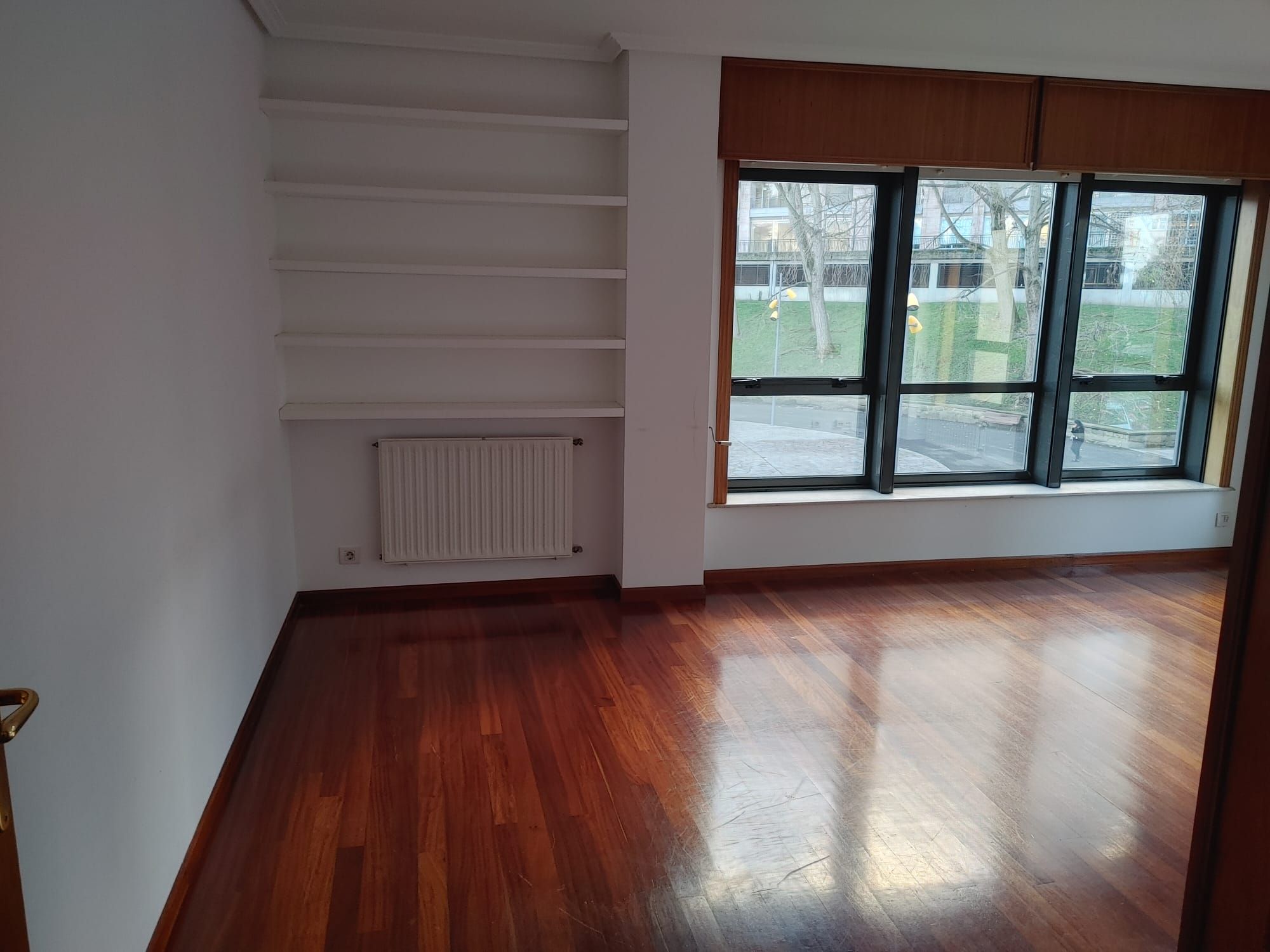 Este luminoso segundo piso exterior ofrece vistas al encantador parque de los Puentes, lo que asegura una excelente entrada de luz natural durante todo el día. Además, incluye una plaza de garaje para coche y moto, un trastero y acceso directo al garaje mediante ascensor. La comunidad es tranquila, con solo tres vecinos por planta y una cuota mensual de 65 euros.