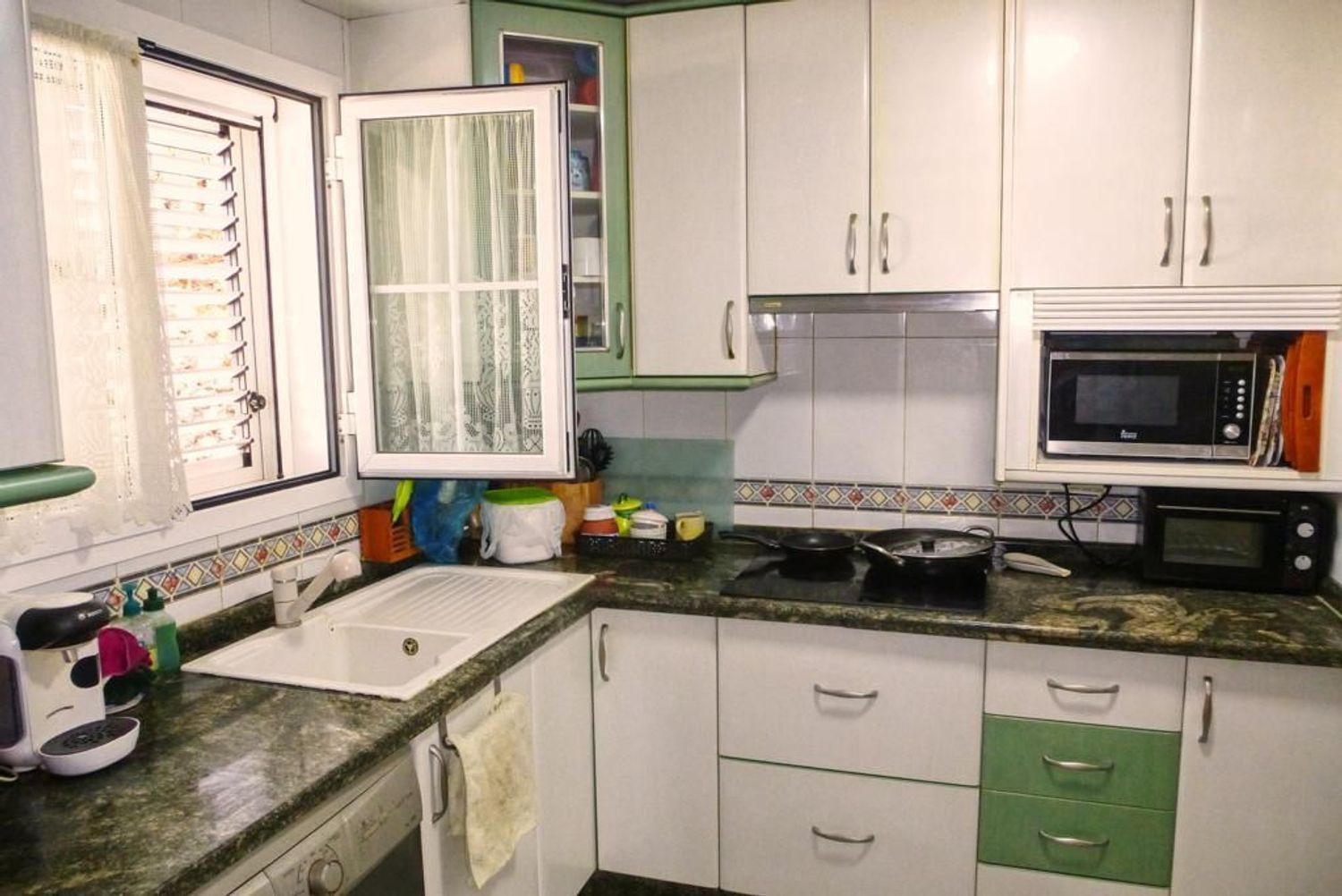 La cocina, diseñada para combinar funcionalidad y estilo, está equipada con electrodomésticos y ofrece un espacio óptimo para la preparación de alimentos.