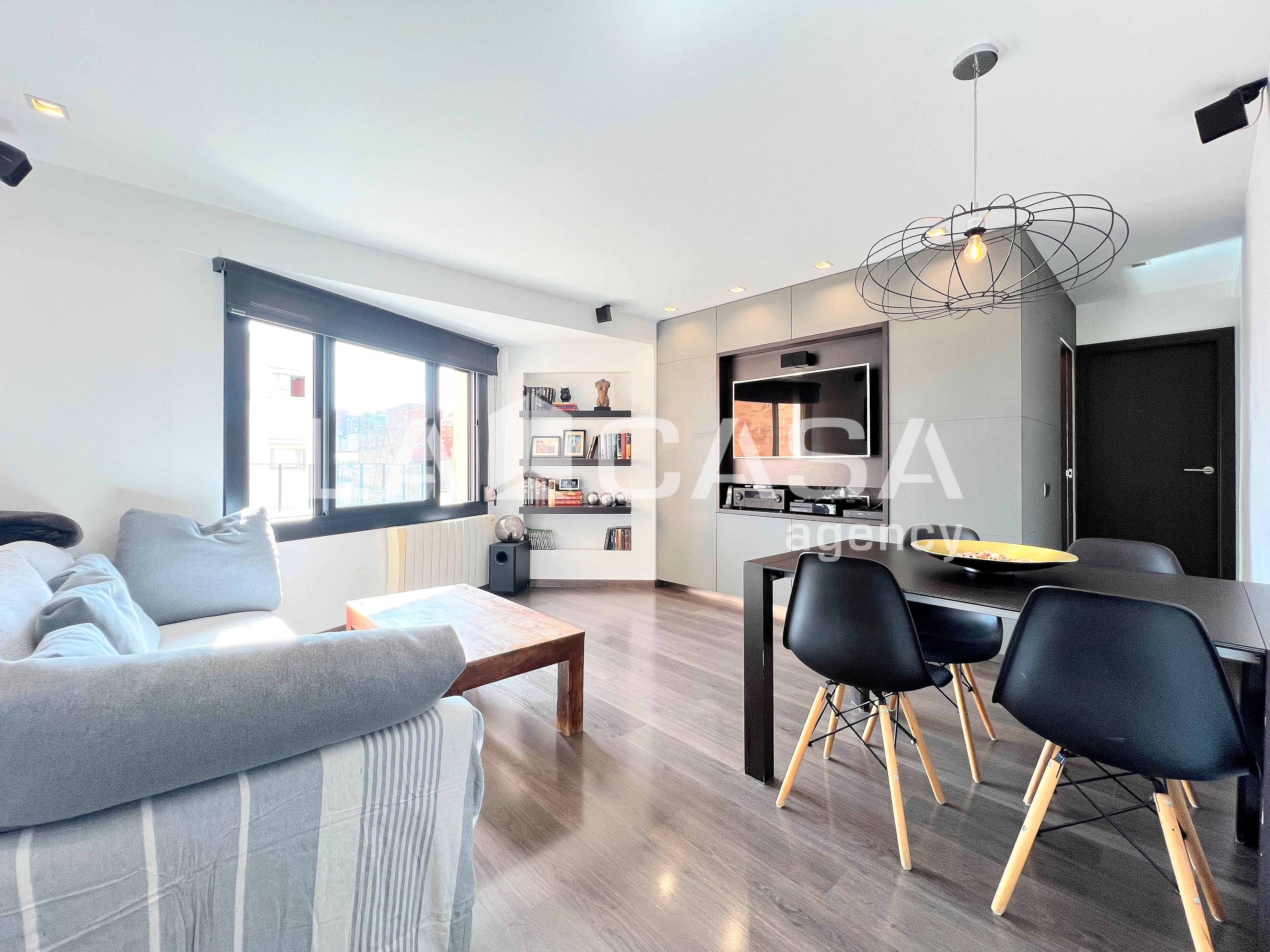 LA CASA AGENCY PRESENTA.. . Vivienda totalmente reformada de diseño moderna y funcional de 80 m2 distribuidos en: -Cocina tipo office. -Salón-comedor exterior. -2 dormitorios dobles exteriores. -Baño de 3 piezas con plato de ducha. -Cuarto de lavandería. La finca es de pocos vecinos que comparten una gran terraza comunitaria en la parte superior del edificio. Acabados de primera calidad: -COCINA: Mobiliario de cocina italiano Doimo Cucine con encimeras de granito y electrodomésticos de alta gama Siemens/Neff. -SALÓN: Librería de madera maciza y mueble de salón lacado texturizado realizados a medida, con mucha capacidad de almacenaje. -BAÑO: Mobiliario de madera natural y plato de ducha de piedra San Vicente realizados a medida. Sanitario suspendido y grifería de diseño Gessi/Grohe. -ELEMENTOS GENERALES: Puertas de madera barnizadas en acabado wengué, parquet laminado C-4 de Quick Step, 2 equipos inverter de aire acondicionado por splits, carpintería de aluminio esmaltada en gris antracita texturizado y vidrios cámara, termo eléctrico de 100 litros. Se encuentra muy cerca de La Salut (metro L10) y líneas de autobús (a 15-20 minutos del centro de Barcelona), zonas comerciales, colegios, centros de salud.. . Su orientación lo convierte en un espacio tranquilo, excluido de la mayoría de ruidos directos del exterior, y con una buena entrada de luz natural durante todo el día. -Sobre La Casa Agency- Somos una agencia inmobiliaria con presencia en todo el territorio nacional, con más de 70 oficinas, ofreciendo una cobertura absoluta en las principales ciudades del país. Nuestro trabajo consiste en realizar todos los trámites y gestiones necesarias para la intermediación inmobiliaria. Disponemos de una amplia cartera de inmuebles de todo tipo. Además, ofrecemos servicios inmobiliarios complementarios de alta calidad, como: -Gestión vertical y/u horizontal de propiedades. -Soluciones de financiación para la compra o el alquiler de inmuebles. -Tramitación de seguros y asesoramiento jurídico y fiscal para garantizar una transacción segura y sin complicaciones. -Reformas y diseño de interiores. Desde La Casa Agency sabemos que la compra de una vivienda es una gran responsabilidad y nuestro equipo estará a tu disposición para apoyarte en todo lo que necesites. ¡Te esperamos! *El precio del inmueble no incluye impuestos, gastos notariales y registrales, honorarios de agencia y gestión hipotecaria (si procede).