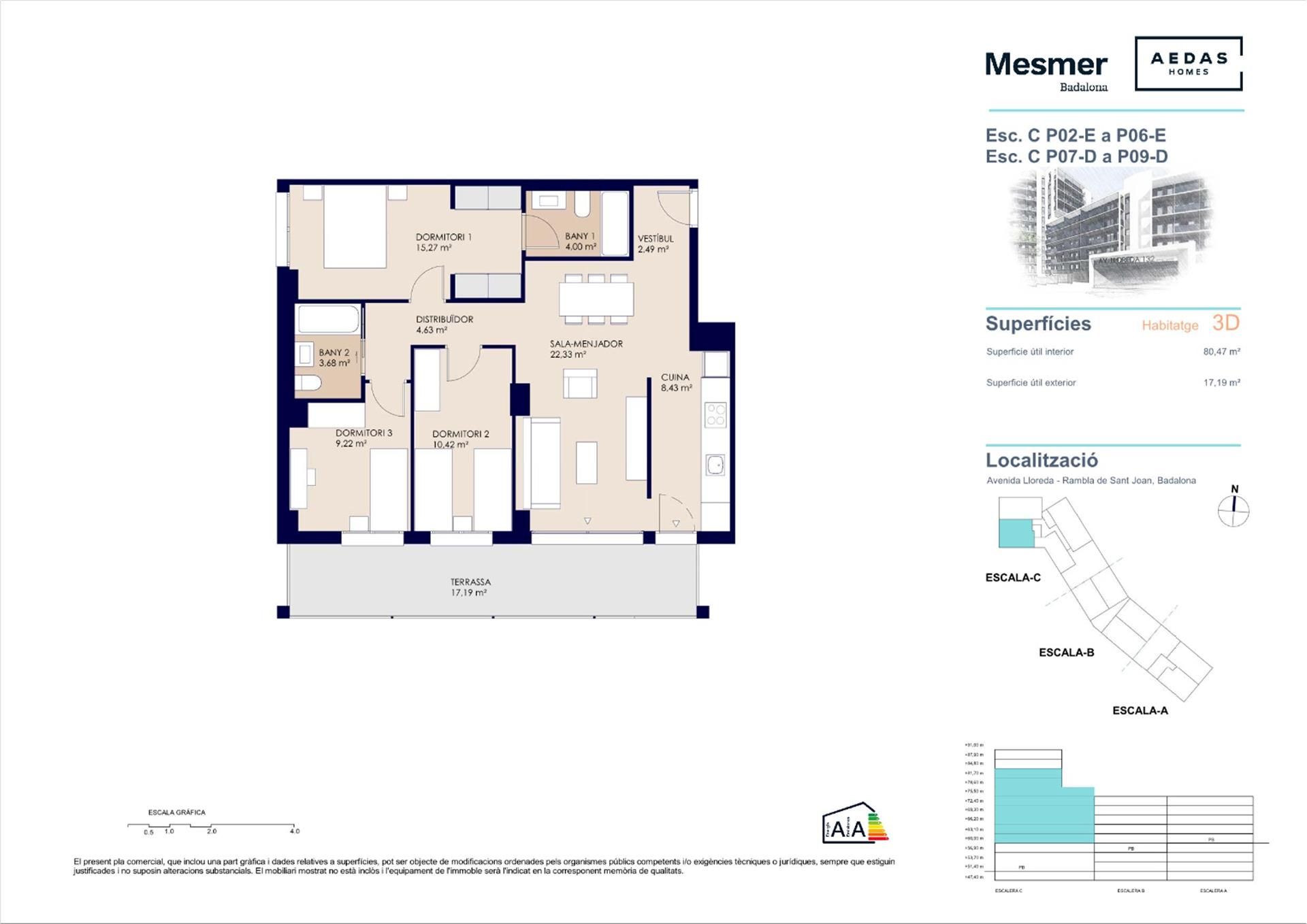 Descubre Mesmer, nuestra promoción en Badalona en una zona residencial privilegiada, donde podrás disfrutar de una maravillosa piscina, zona comunitaria y despejadas y espectaculares vistas al parque de Montigalá. Todas las viviendas ofrecen grandes terrazas y amplitud de espacios interiores.
