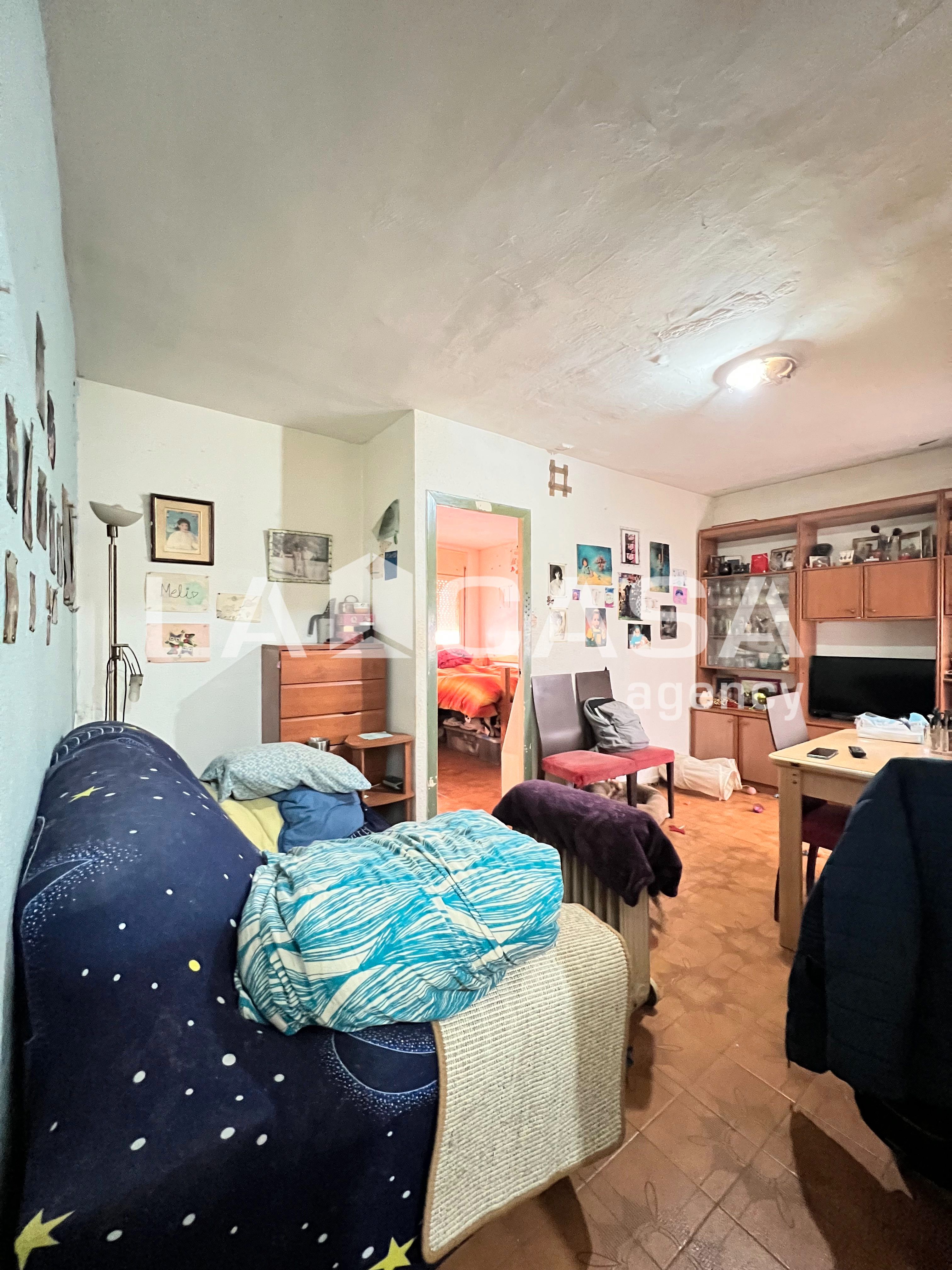 La vivienda mencionada presenta actualmente una sola habitación doble exterior y amplia, ya que de origen eran dos. Cuenta con una cocina interior, la cual posee gas butano, saliendo por el pasillo encontramos el baño de tres piezas con plato de ducha para actualizar. Presenta instalación eléctrica actualizada, suelos de gres y carpintería de madera.