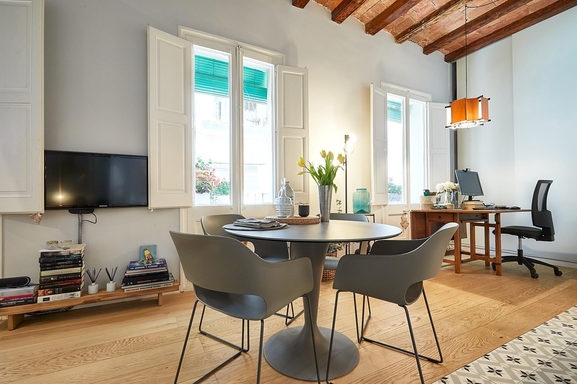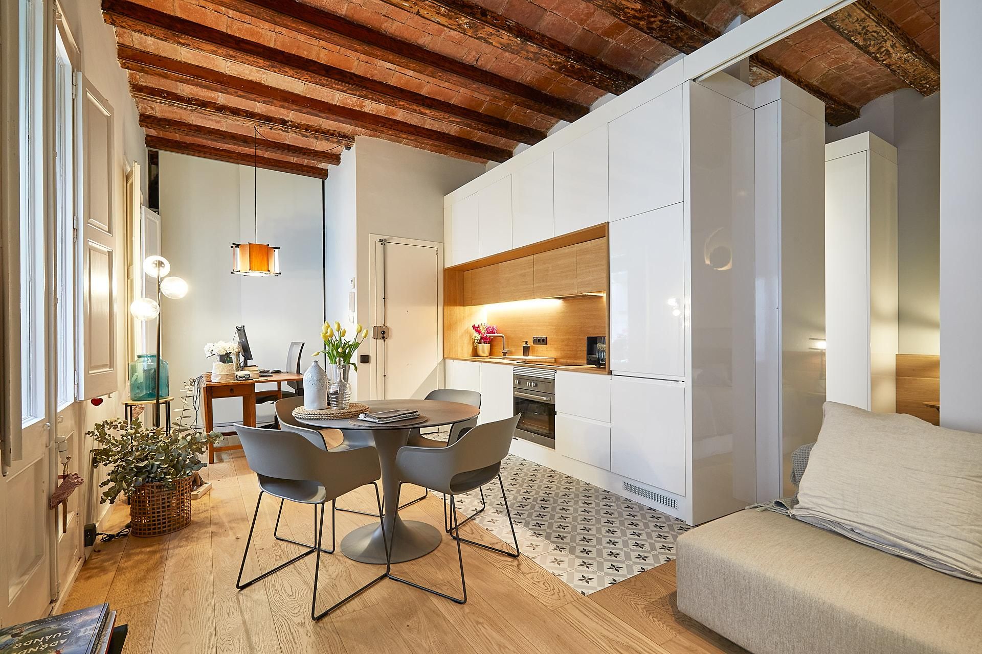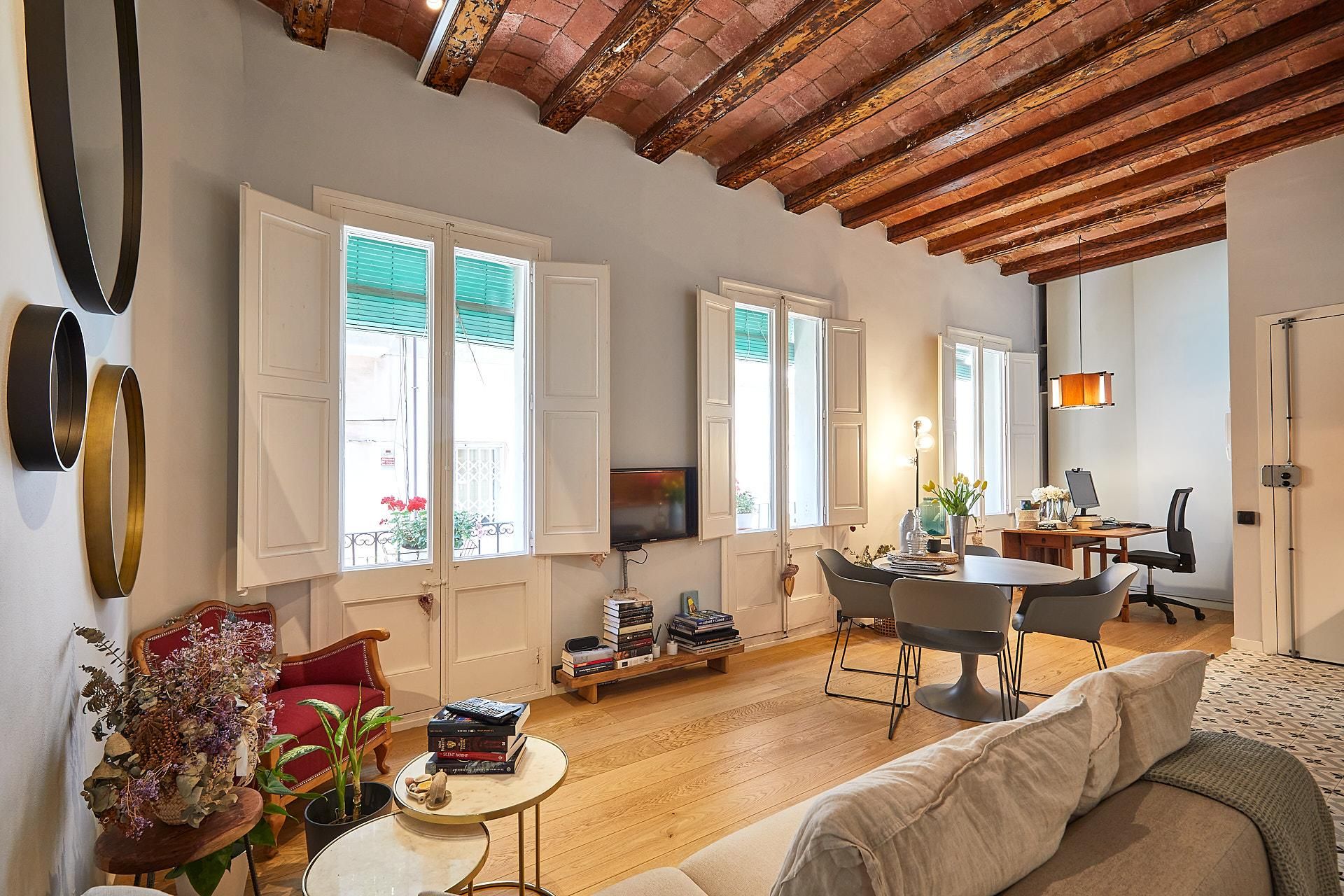 Sin duda, lo que más destaca de esta vivienda es el mantenimiento que ha echo la propiedad de los elementos arquitectónicos de la época, sus techos altos y la volta catalana, y su magnífica ubicación.