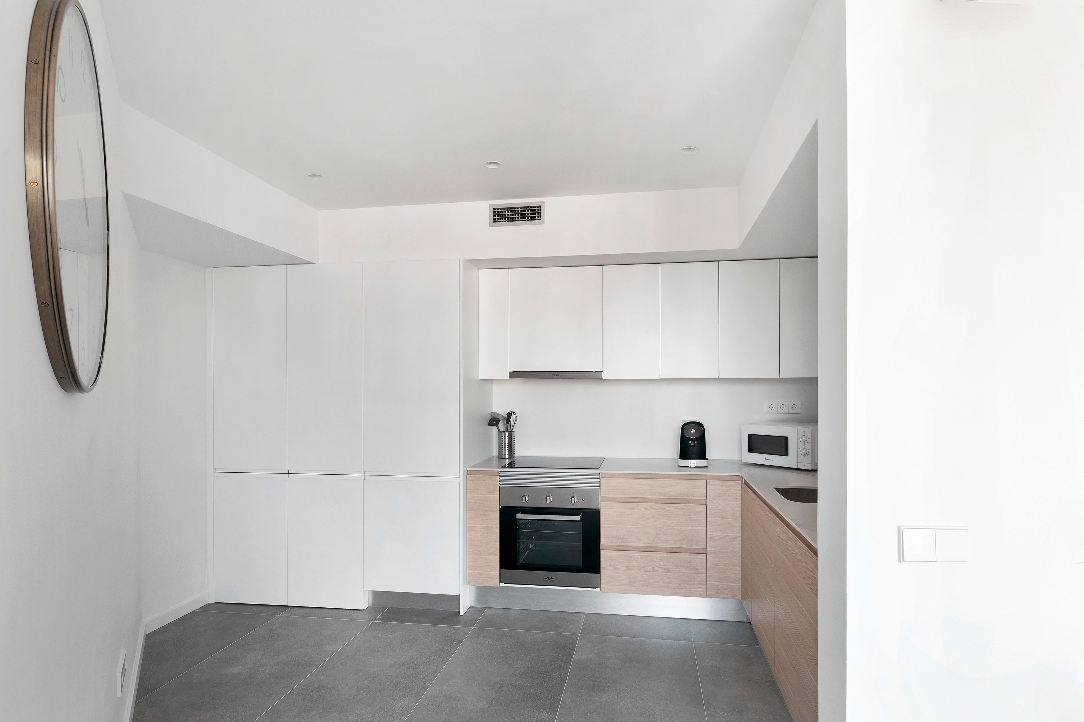 El apartamento tiene una superficie de 42m2, consta de una habitación, un baño, cocina y sala de estar, y ofrece todo lo que necesitas para vivir cómodamente. La cocina está completamente equipada, con lavavajillas, lavadora, máquina de hacer café, microondas, horno y nevera. El apartamento se caracteriza por su increíble luminosidad al disponer de grandes ventanales que además permite al inquilino poder disfrutar de las vistas.