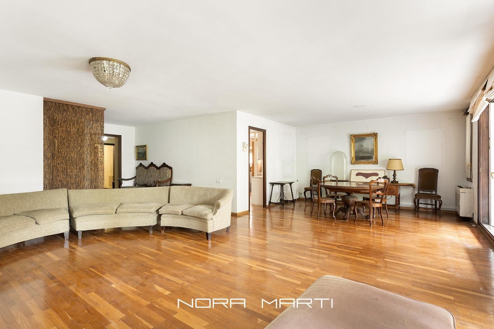 Ubicado en una calle tranquila, junto a Ganduxer, disponemos de este señorial piso a tres vientos. Se accede desde el recibidor a amplio salón comedor y cocina con office. Flanqueado el salon comedor con una terraza de 25 m., amplia y soleada. Antes de acceder a la zona de noche, en el mismo distribuidor, se encuentra un aseo de cortesia y la zona de servicio. Y ahora si, llegamos a la zona de noche, con 4 habitaciones dobles, dos de ellas en suitte y un baño.