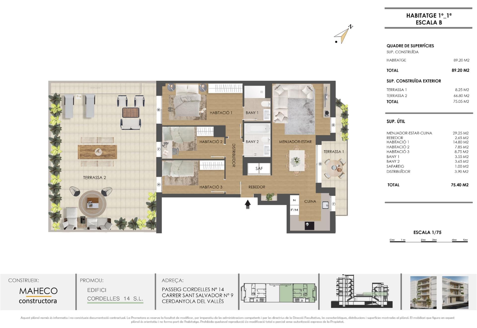 Esta vivienda de 89,20 construidos está situada en la escalera B del edificio y está formada por: