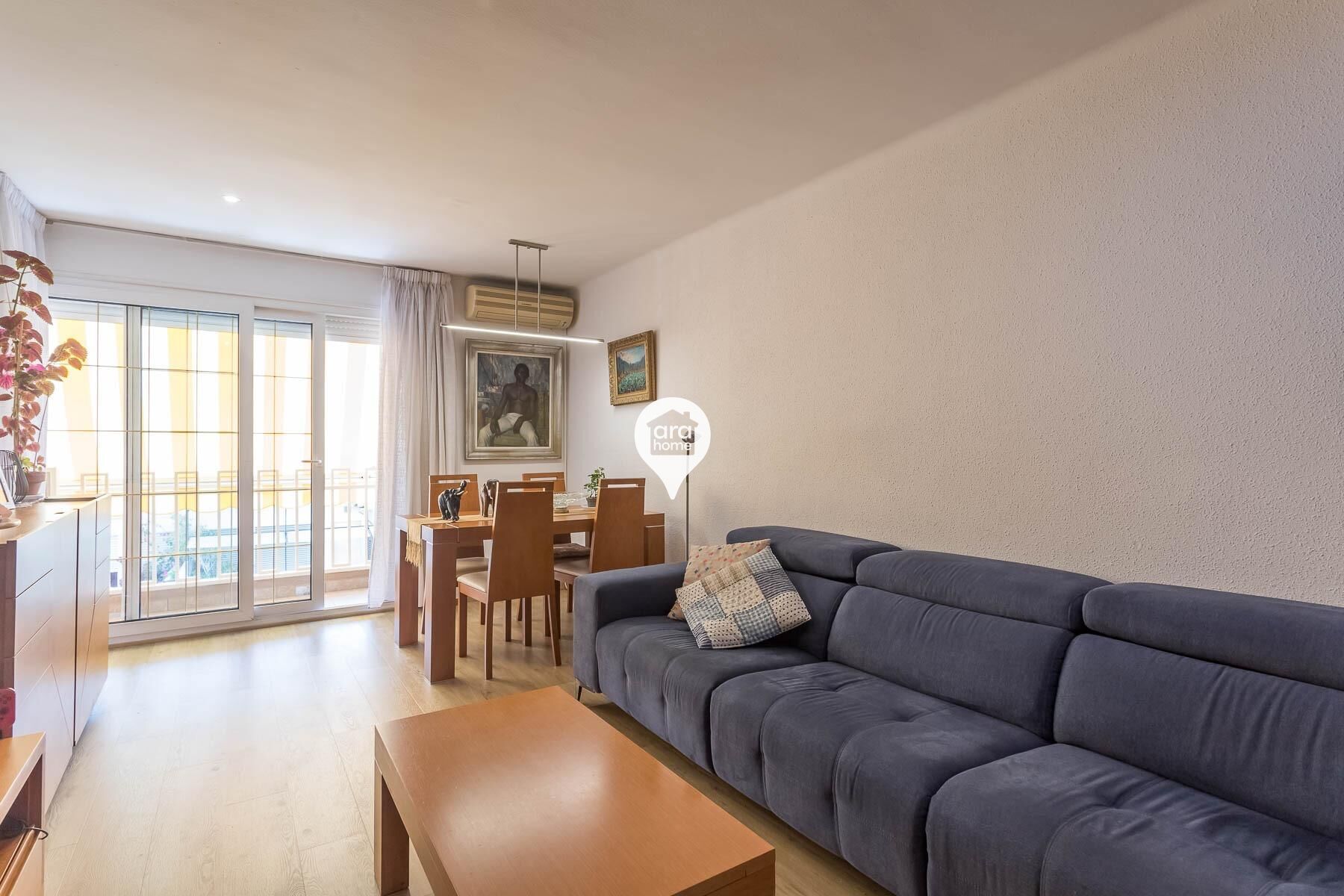 Piso muy cerca de la estación y muy cerca de la Plaza Santa Anna, en la Av. Jaume Recoder, piso amplio, luminoso, súper tranquilo porque da a los patios interiores, con terracita, Tiene 4 habitaciones, 2 dobles y 2 individuales, de las cuales actualmente una se utiliza como vestidor; tiene un salón comedor grande que da a la terraza con espacio suficiente para poner mesa y 6 sillas, tiene 2 baños y cocina casi nueva!