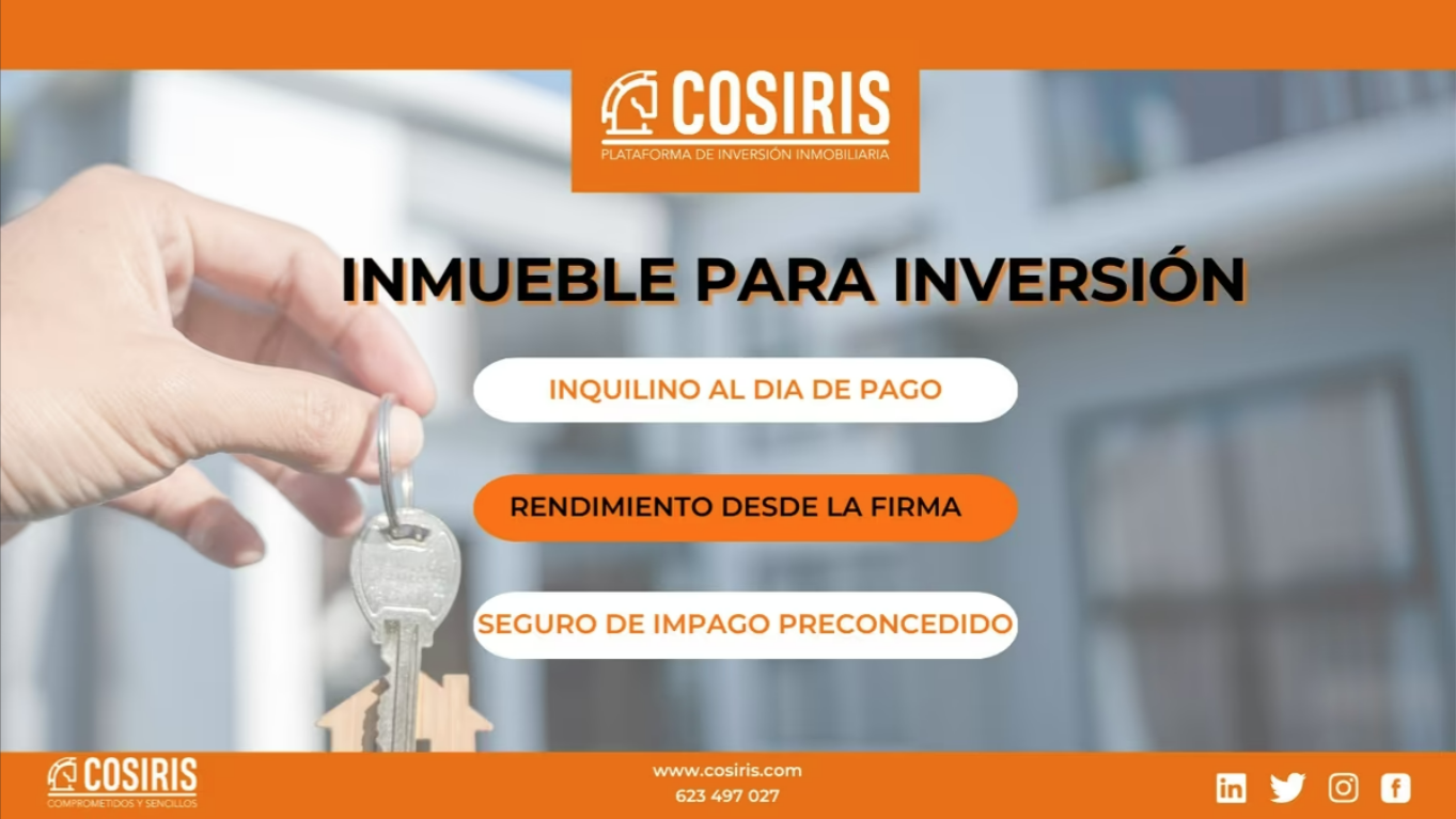 Este inmueble se encuentra actualmente alquilado con una renta mensual de 1.600€ generando una rentabilidad bruta del 8,22% ¿Quieres más información? Nuestros agentes resolverán tus consultas ¡No te pierdas ninguna oportunidad! Regístrate en el área privada de: www.cosiris.com