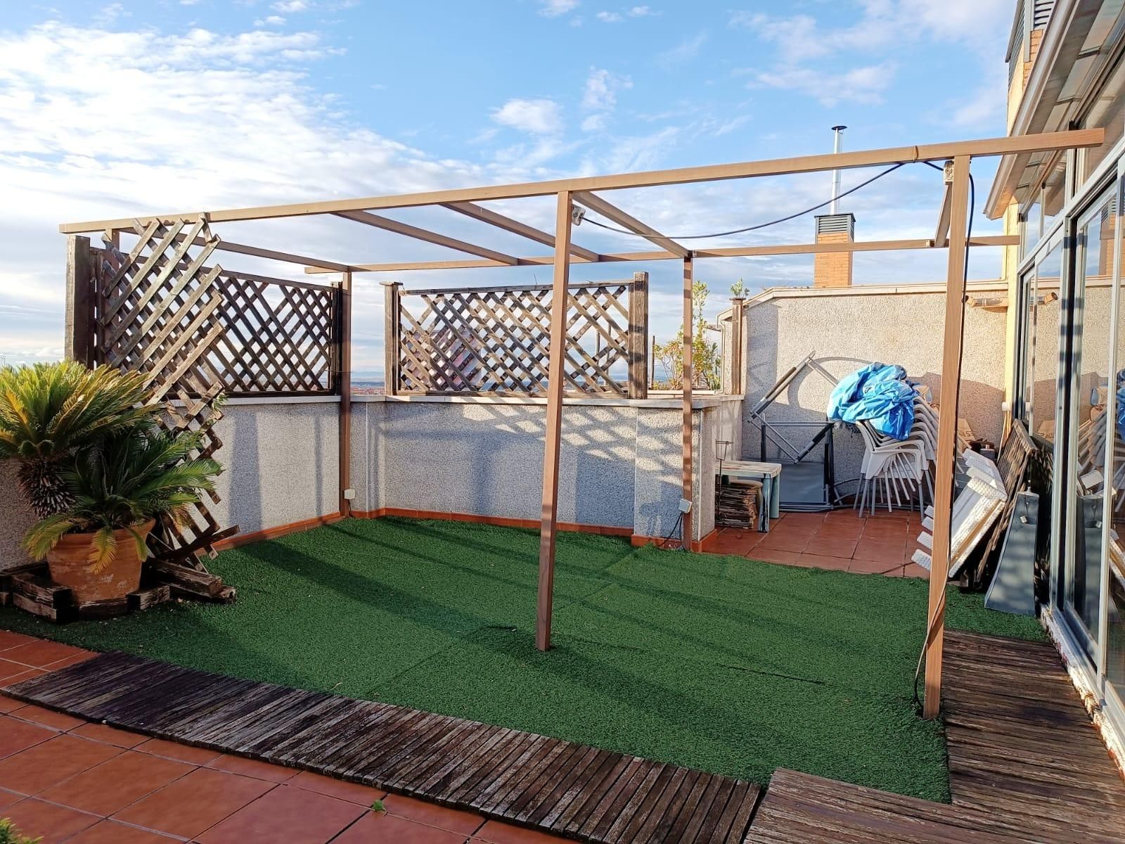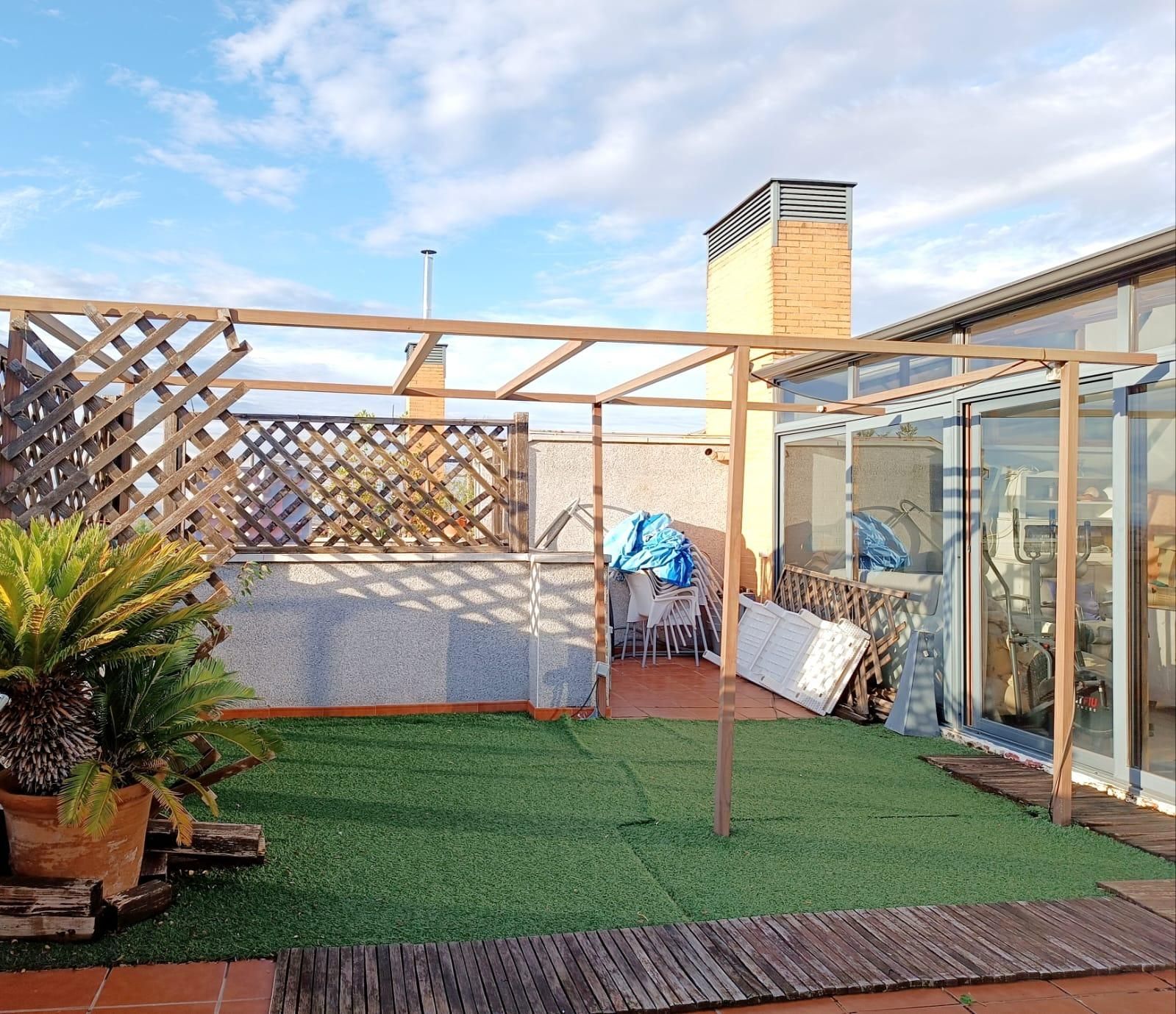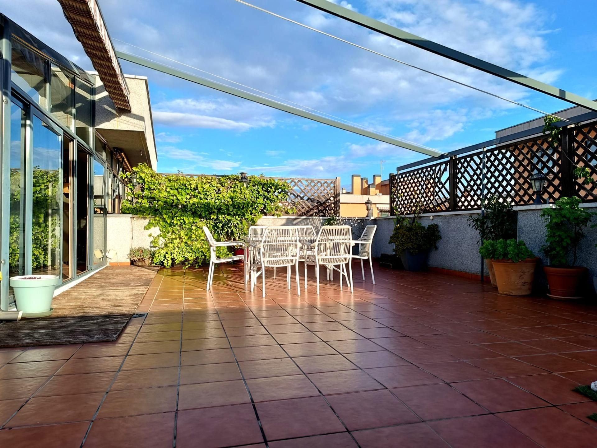 Imagina un espectacular ático ubicado en una zona privilegiada, donde cada rincón ha sido diseñado para ofrecer confort y elegancia. Este ático cuenta con una impresionante terraza de 150 metros cuadrados, donde no falta detalle. La terraza está dividida en varias zonas: una acogedora área de chillout perfecta para relajarse, una zona cerrada con chimenea ideal para disfrutar en invierno y una parte abierta donde puedes estar con la familia y contemplar las maravillosas vistas al atardecer.