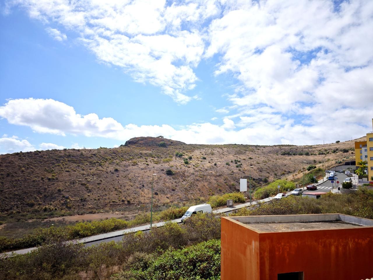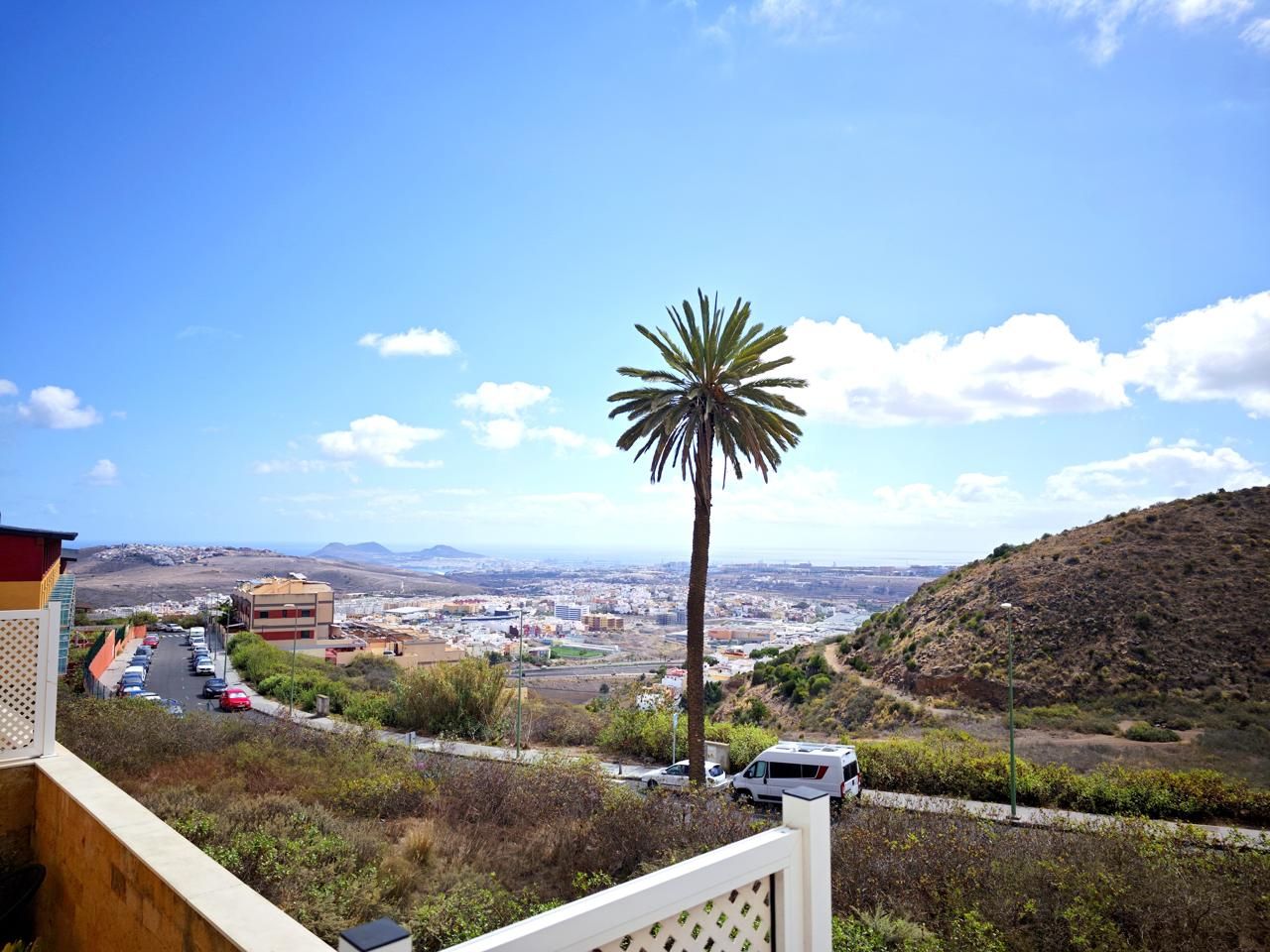 El piso es amplio y luminoso y consta de 3 habitaciones, un salón, una cocina, 2 baños, un balcón y una amplia terraza. El salón es amplio y grande con ventanas hacia el exterior, donde se puede disfrutar de unas vistas impresionantes a la Ciudad de Las Palmas. Desde el salón hay una puerta deslizante que nos lleva a la cocina. La cocina también tiene su propia puerta de acceso desde la zona común. La cocina está totalmente amueblada y equipada con vitrocerámica, extractor, lavadora, y un horno y una pequeña barra americana. Desde el salón podemos acceder al balcón, y bajando unas pequeñas escaleras que nos lleva a una terraza amplia, con vistas a la naturaleza. Una parte de la terraza está techada. Con respecto a las tres habitaciones: una habitación es pequeña con ventanas hacia un patio interior, la segunda habitación es mediana, y la tercera es bien grande con un baño en suite. Estas dos habitaciones tienen ventanas que dan hacia la zona común del edificio. Las tres habitaciones tienen armarios empotrados. Los dos baños están completos con aseo, lavabo, bidé, y bañera.