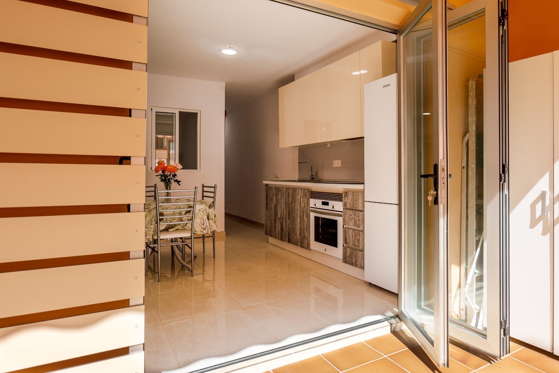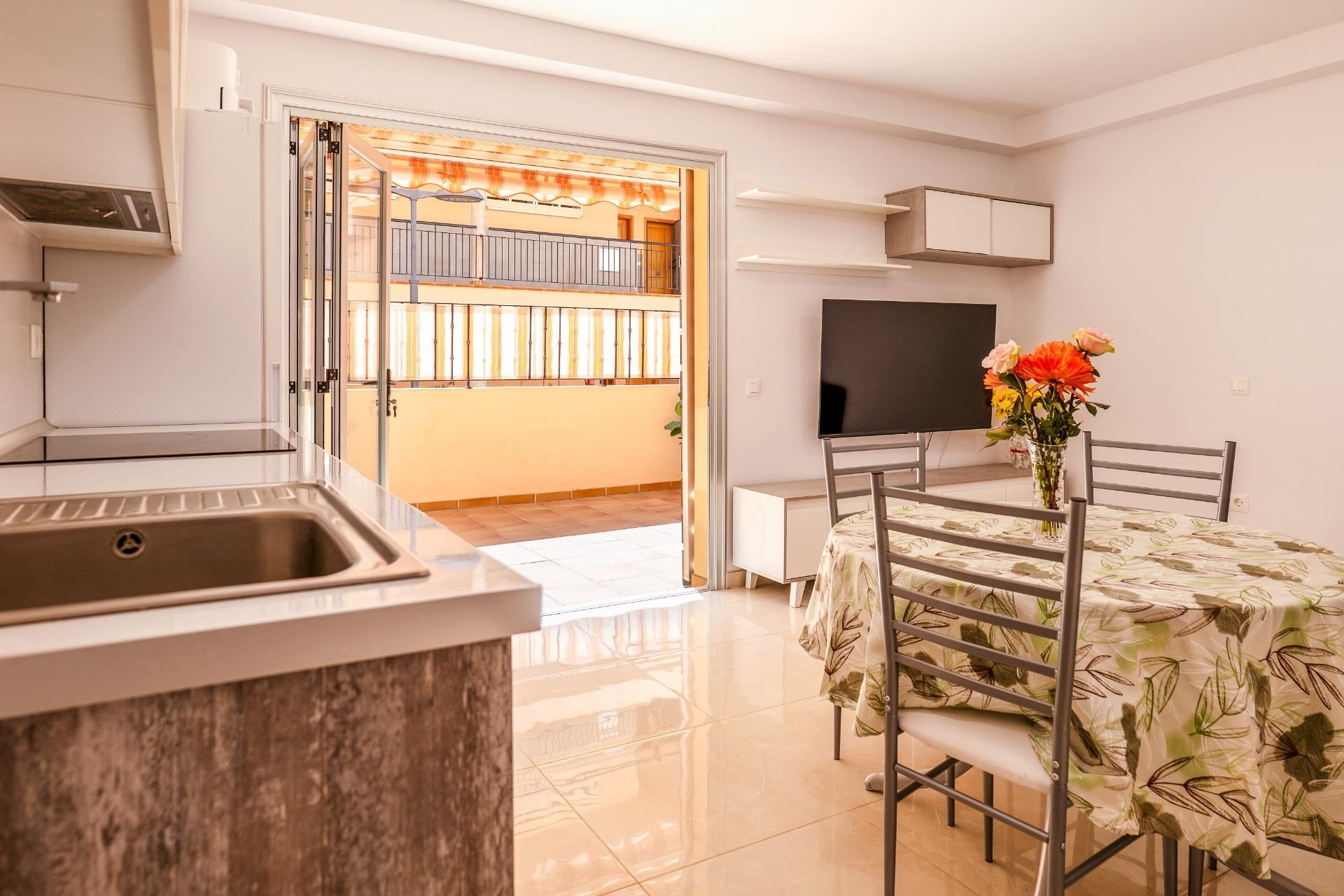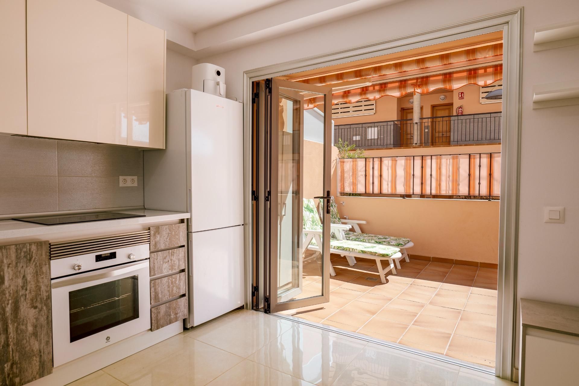 El apartamento en venta en Los Cristianos, Tenerife Sur, ofrece dos dormitorios con armarios empotrados, un baño completo y una cocina americana equipada. Se trata de una propiedad nueva y totalmente reformada, en excelentes condiciones.