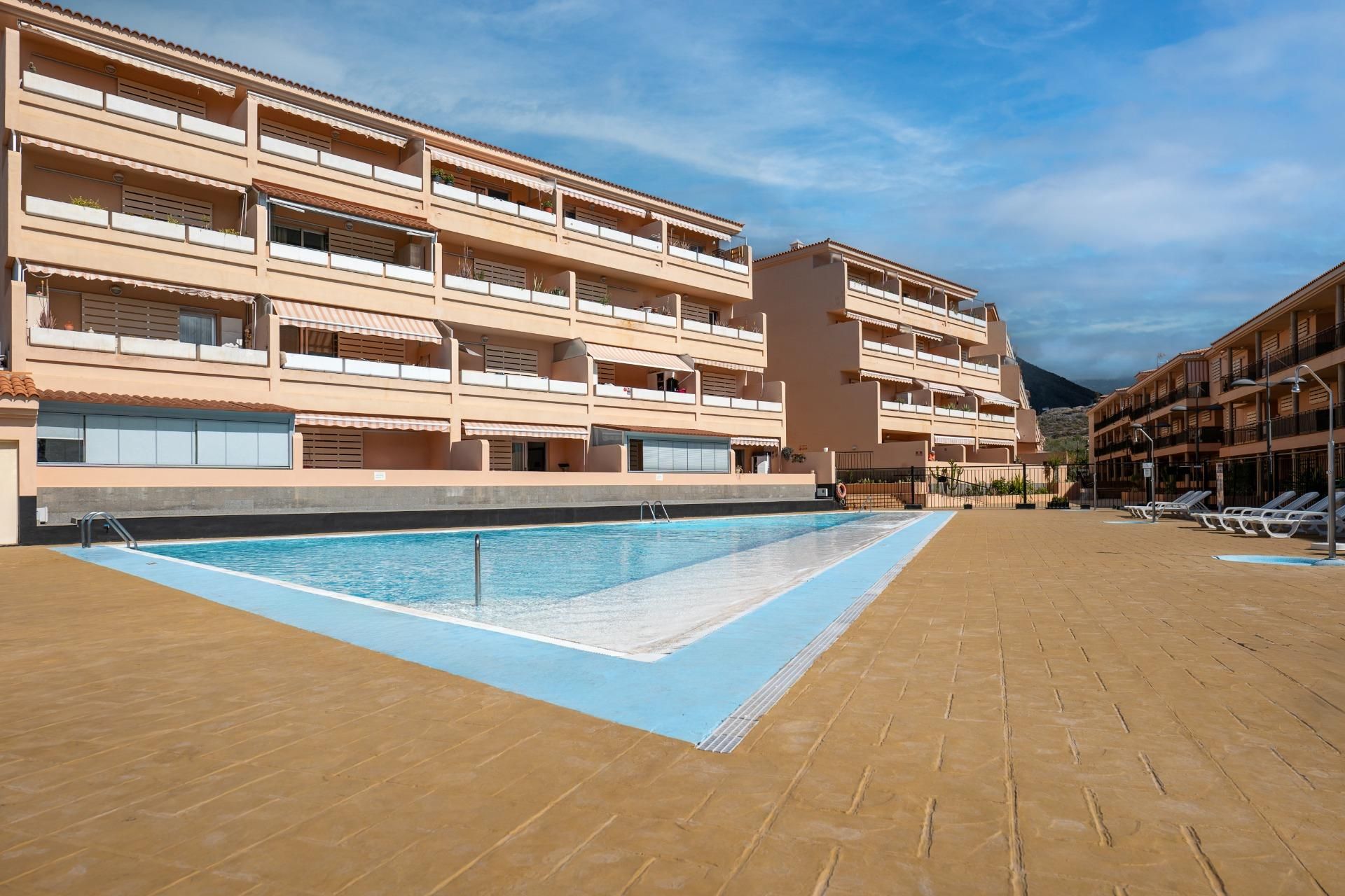 Destaca por contar con una terraza soleada de 15 metros cuadrados, ideal para disfrutar del clima. Además, incluye garaje y trastero privado, lo que proporciona comodidad y espacio de almacenamiento adicional. El complejo residencial donde se encuentra el apartamento ofrece piscina comunitaria, lo que permite disfrutar de un baño durante todo el año. Está ubicado en el centro de Los Cristianos, lo que brinda acceso fácil a servicios, restaurantes, tiendas y lugares de entretenimiento.