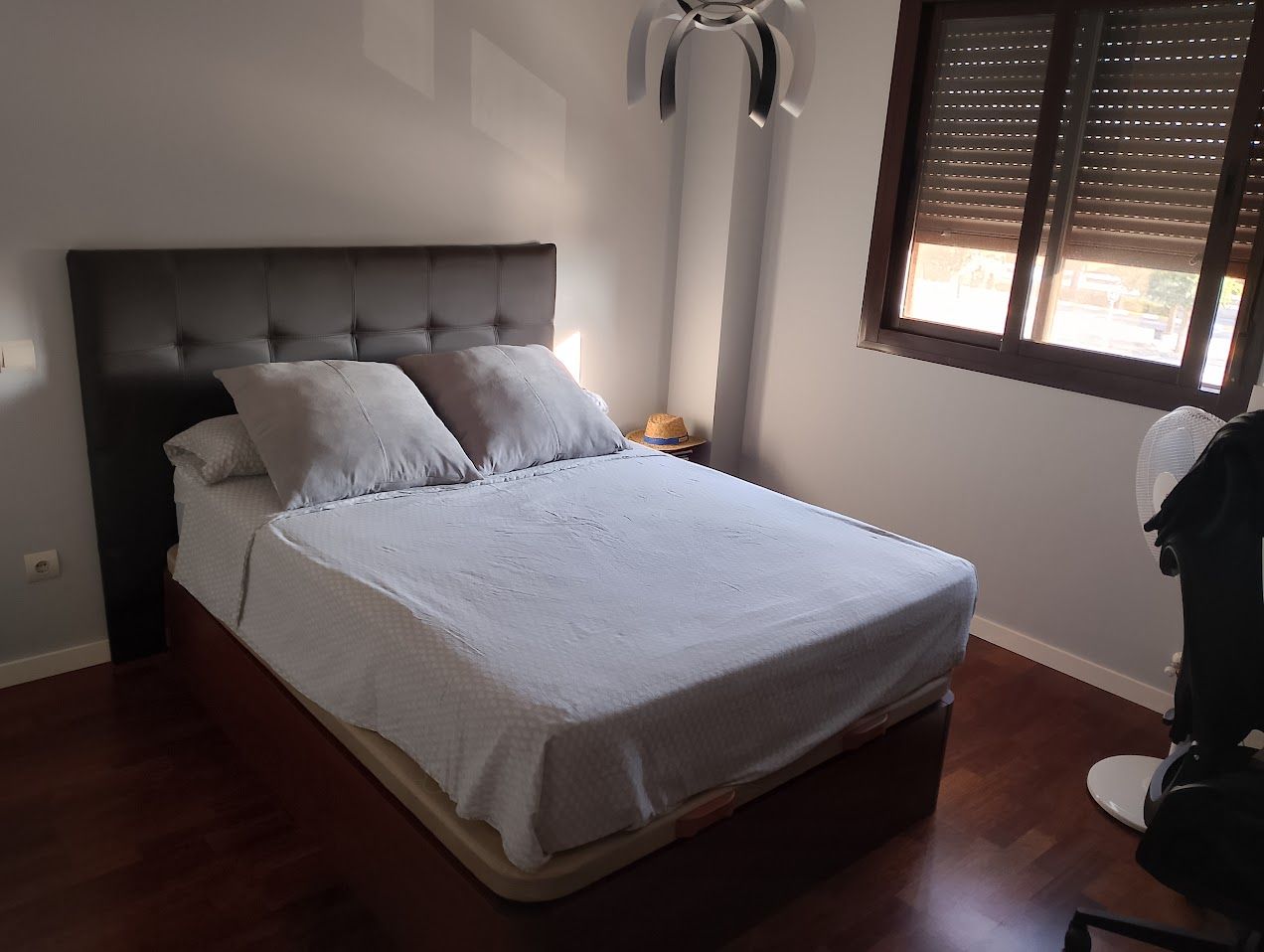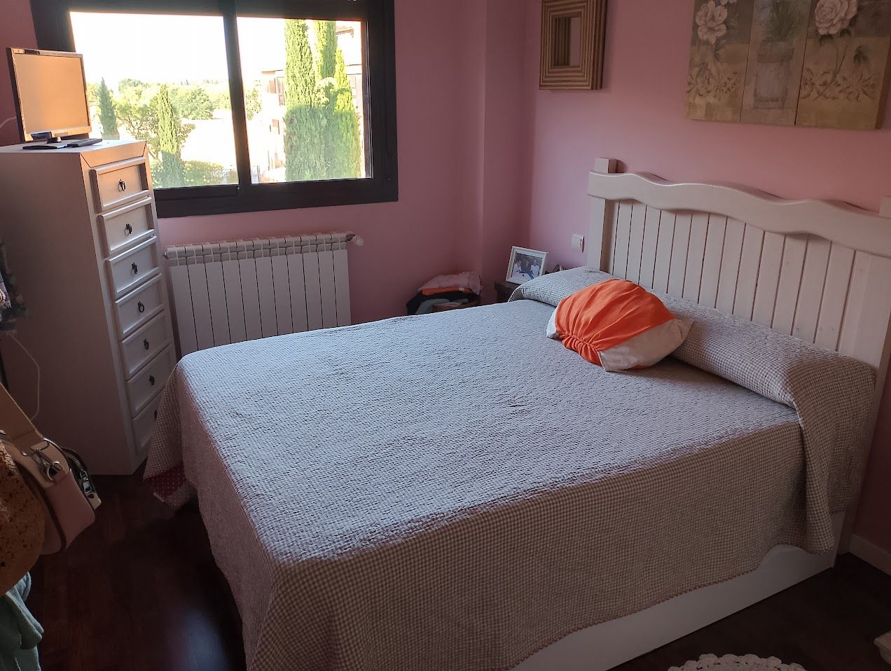 Piso cerca de transportes públicos, en el pulmón de la población, en urbanización con piscina, jardín, gimnasio. En segunda planta con ascensor y se distribuye en salón comedor, cocina con despensa, cuarto de baño, dos dormitorios sencillos y un dormitorio doble con baño interior. Plaza de garaje incluida en el precio. Suelos de tarima, puertas en blanco, ventanas de aluminio, aire acondicionado, calefacción de gas natural. En perfecto estado.