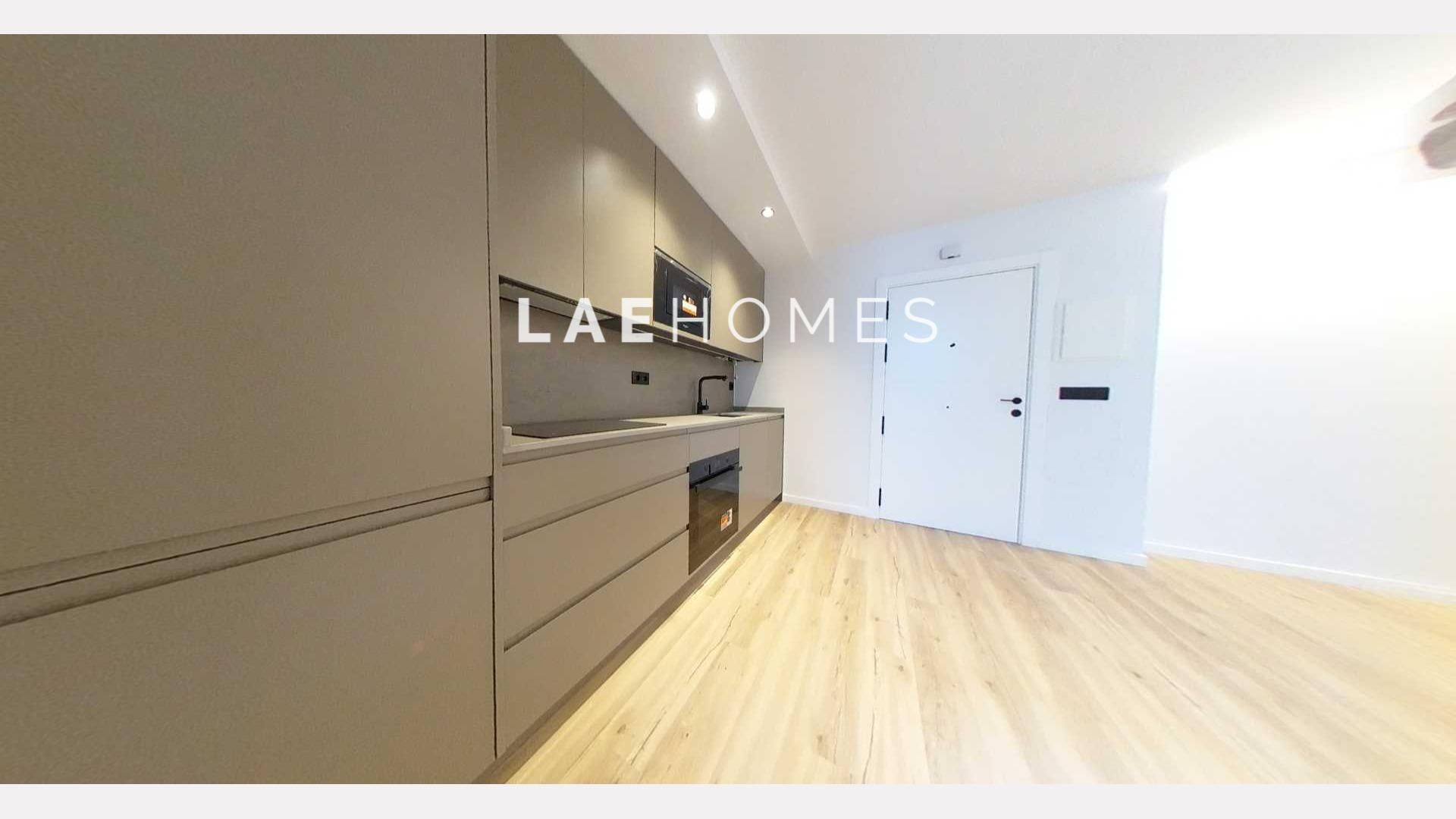 La cocina, de diseño moderno y equipada con electrodomésticos, se mimetiza con el mobiliario, creando un espacio totalmente integrado y funcional.