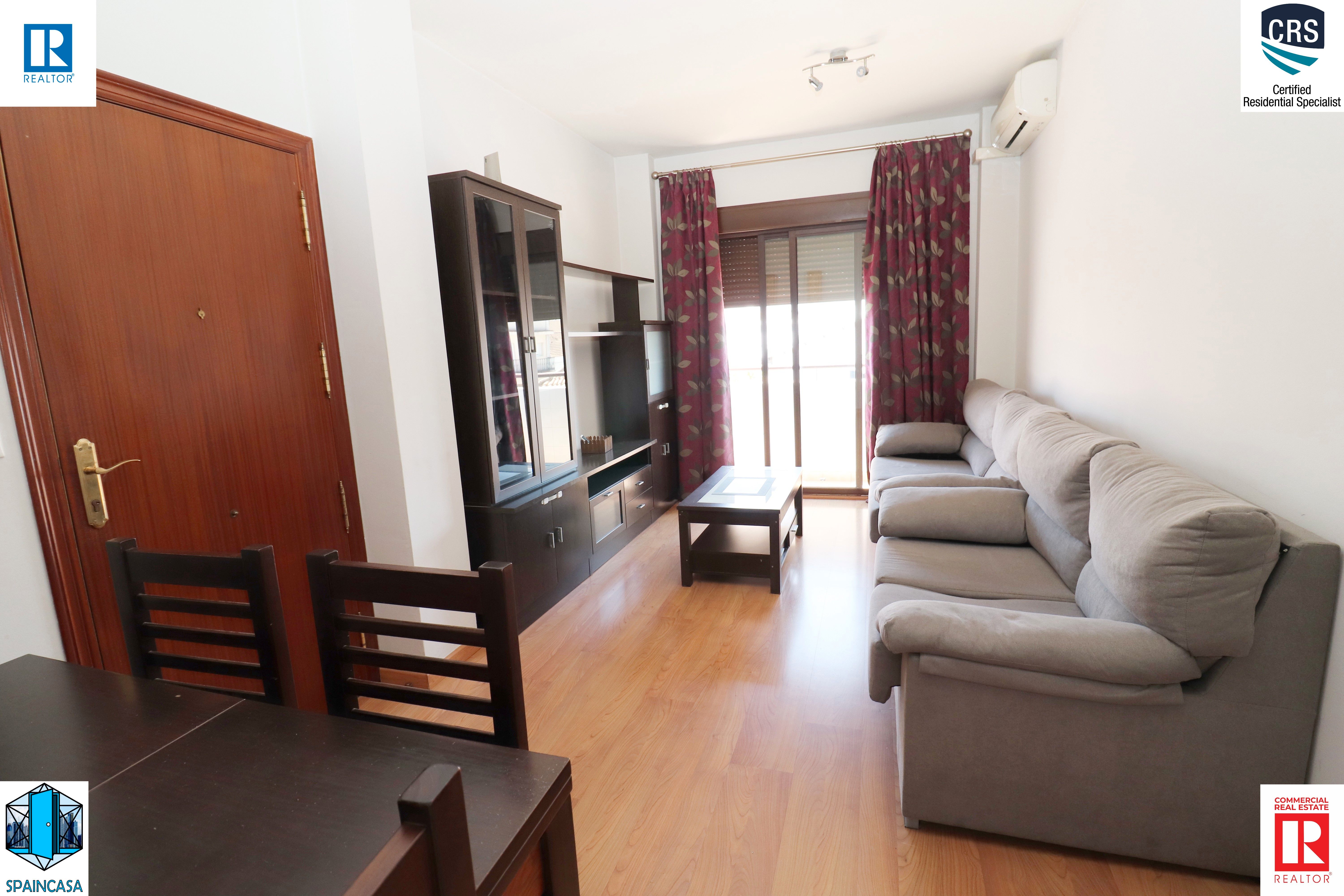 Entramos al salón que es bastante espacioso y con balcón a la calle , después acedemos a la cocina que esta totalmente amueblada y equipada con electrodomésticos , Tres dormitorios con Armarios empotrados forrados y terminados por dentro con sus cajoneras , y un baño completo con plato de ducha .